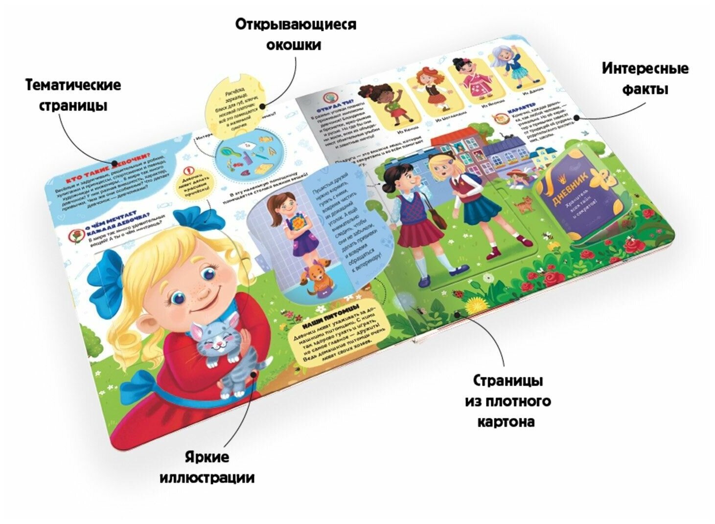 Хочешь узнать, что овхдего у всех девчонок на Земле и почему каждая из них уникальна? В этом теве поможет книжка с окошками «Кто такие девочки?» от торговой марки Malamalama. На странииах книги — лювимые ховви девчонок, их маленькие