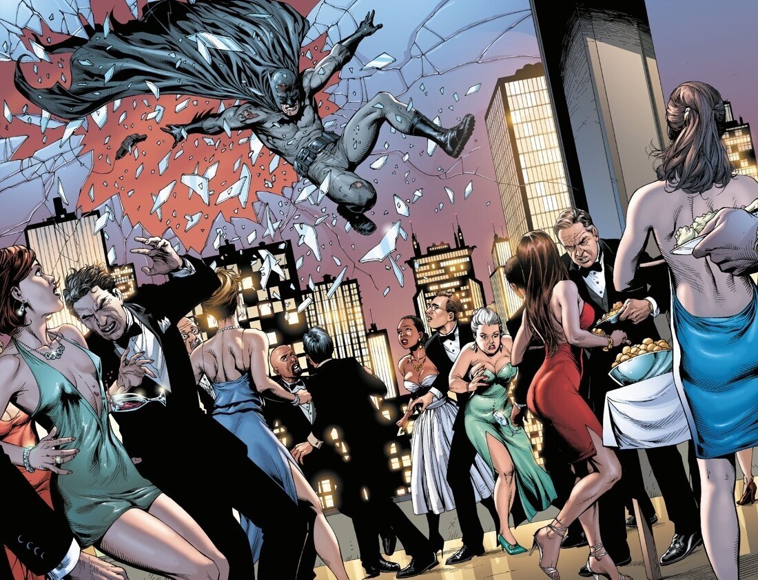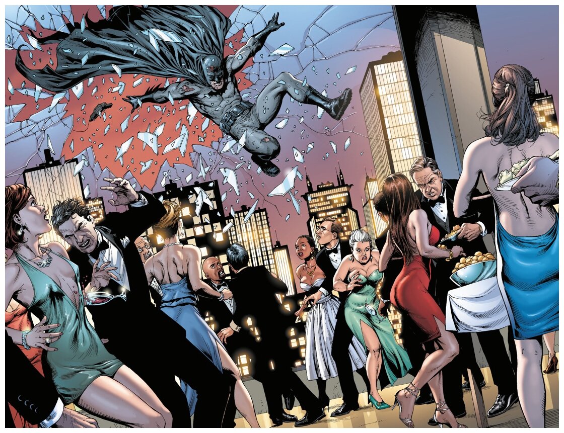 В этом комиксе автор решил по новому взглянуть на историю становления знаменитого персонажа. Для этого ему пришлось пожертвовать каноничностью, переписав характеры и истории знакомых нам героев. Это может отпугнуть некоторых фанатов, которые не потерпят изменений в устоявшихся образах любимых персонажей. Но если вы готовы принять данную условность, то получите от прочтения много положительных эмоций. Джефф Джонс наверняка вдохновлялся кинотрилогией Нолана когда писал сценарий этого графического романа. Как и в фильмах именитого режиссера, Джонс старается сделать упор на реализм. Персонажи истории вышли очень живыми, им хочется сопереживать. Особенно понравился обновленный образ Альфреда, из прислуги-няньки он превратился в харизматичного наставника, повидавшего ужасы войны. Рисунок просто великолепен! Замечательная работа художника и колориста будет радовать ваш взор с каждой новой страницей.