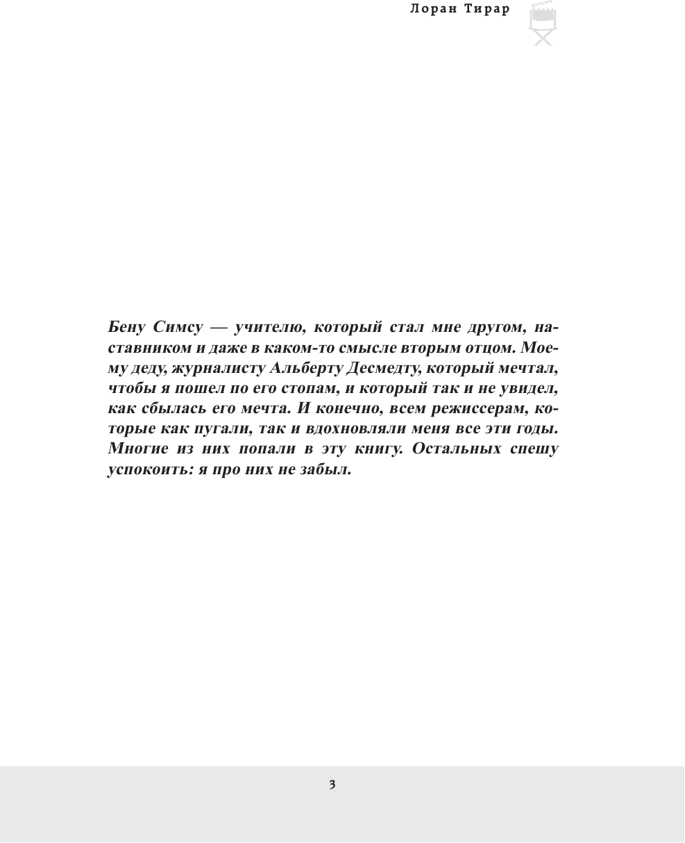 «По мне, эти советы — словно вечные истины. Я использую их как чек-лист перед тем, как приняться за следующий фильм, а также как универсальное пособие по исправлению ошибок. Кроме того, я уверенно могу сказать: теперь я не журналист, а режиссер, — и я продолжаю обращаться к этим беседам, потому что меня поражает, сколько всего полезного можно извлечь из беседы с мастером». — Лоран Тирар «Профессия режиссер. Частные уроки от великих режиссеров»