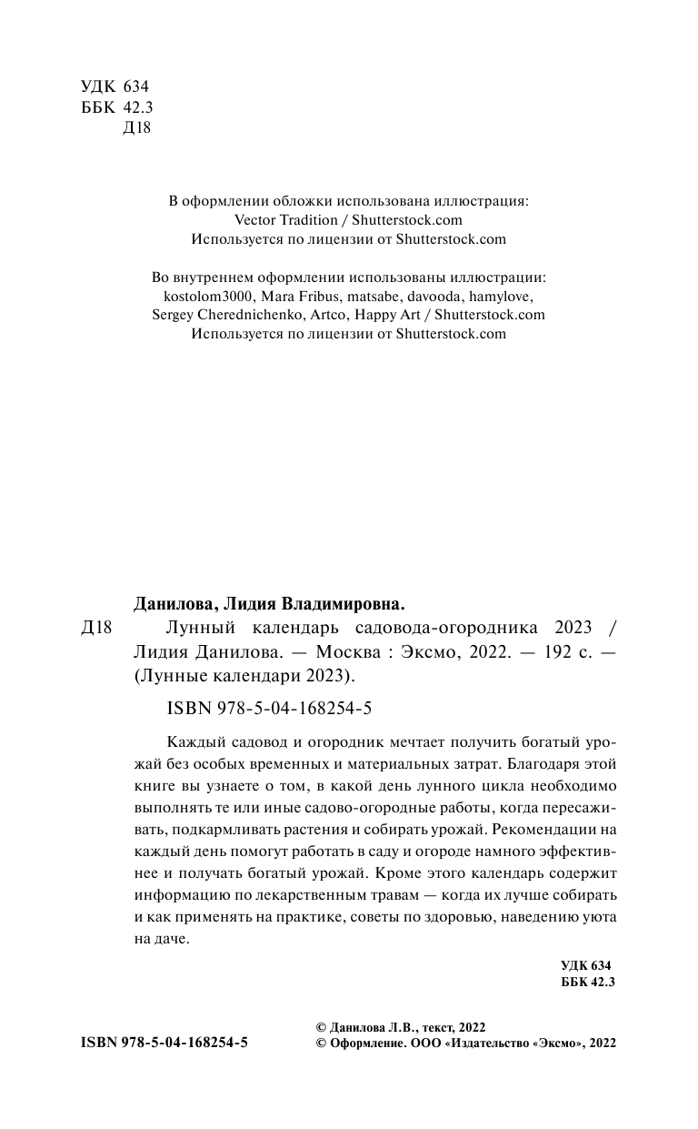 Сервис сравнения цен СкидкаГИД предлагает сравнить цены на товар «Книга: Лунный календарь садовода-огородника 2023. Сад огород здоровье дом (Данилова Лидия Владимировна); ООО "Издательство "Эксмо", 2022»
