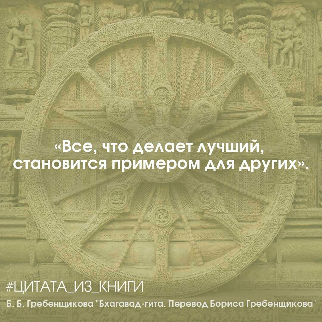 Перевод, выполненный российским музыкантом, композитором, певцом и бессменным главой группы «Аквариум» Борисом Гребенщиковым отличается от всех прежних переводов «Гиты» на русский язык. Цель, которую ставил перед собой Гребенщиков, заключалась в том, чтобы придать тексту те же простоту и ясность, какими обладает христианское «Евангелие».