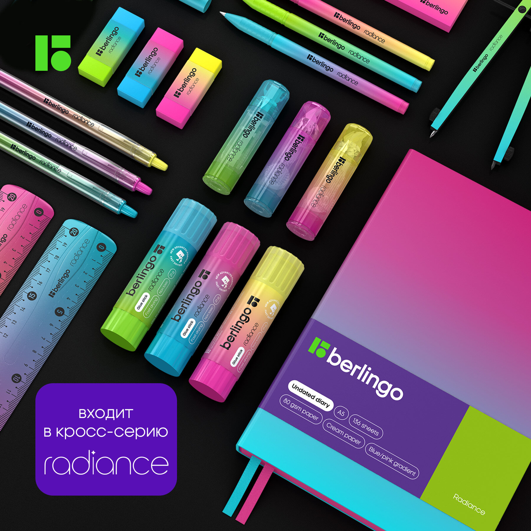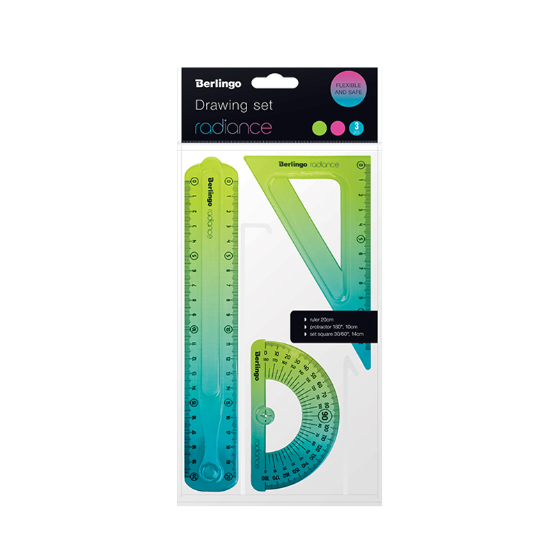 Набор чертежный Berlingo Radiance Треугольник 14см + Линейка 20см + Транспортир гибкий
