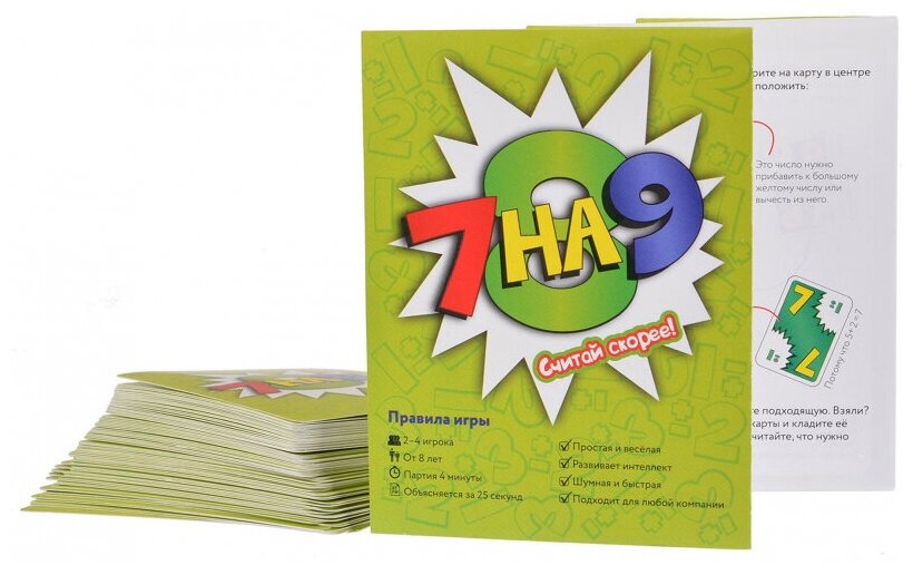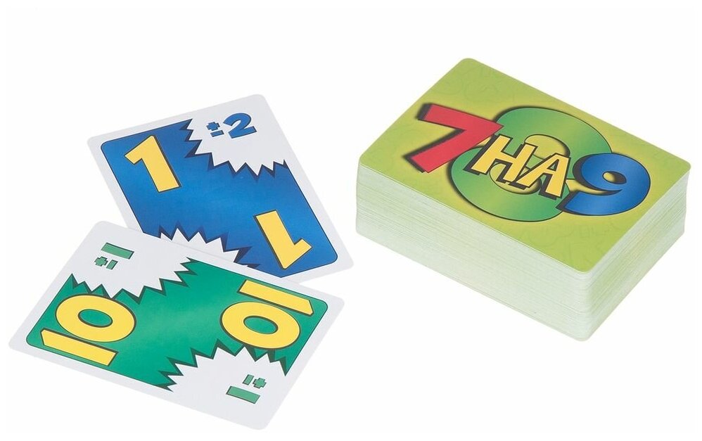 Настольная игра 7 на 9 позволит Вам устроить соревнования по арифметике на скорость! Главная задача предельно ясна: игрокам необходимо избавиться от своих карт. На каждой карте есть число и специальный модификатор, отнимающий и прибавляющий также определенное число. Необходимо не ошибиться и выложить целую цепочку. Цифры вызывают Вас на бой, и отказаться никак нельзя!