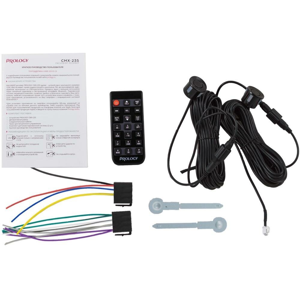 PROLOGY CMX-235 FM / USB ресивер с Bluetooth, стандартного размера 1DIN, который обеспечивает прием радиостанций в диапазоне FM и воспроизведение медиафайлов MP3, WAV, и FLAC форматов, записанных на USB накопители, передачу звука с внешних источников через линейный аудиовход и беспроводной интерфейс Bluetooth. Парковочная система, входящая в комплект, позволит удобно и безопасно парковать Ваш автомобиль, избегая столкновения. Поддерживается управление мобильным телефоном через интерфейс Bluetooth (ver. 4, 2). Устройством можно управлять при помощи мобильного приложения Prology Audio, установленного на Ваш смартфон с операционной системой Android или iOS.