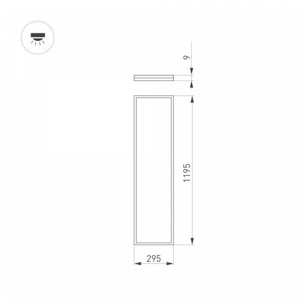 Светодиодная панель с торцевой засветкой (edge-lit). Мощность 40 Вт, св. поток 4000 лм, 100 лм/Вт, белый 6000 K, CRI>80, угол 120°, напряжение питания 230 В. Белый квадратный корпус из алюминия, экран PS, LGP PMMA, степень защиты IP20. Размер: длина 1195 мм, ширина 295 мм, высота 9 мм. Монтаж встраиваемый, установочное отверстие длина 1175 мм, ширина 275 мм. Драйвер 27-42 В, 1000 мА, пульсация