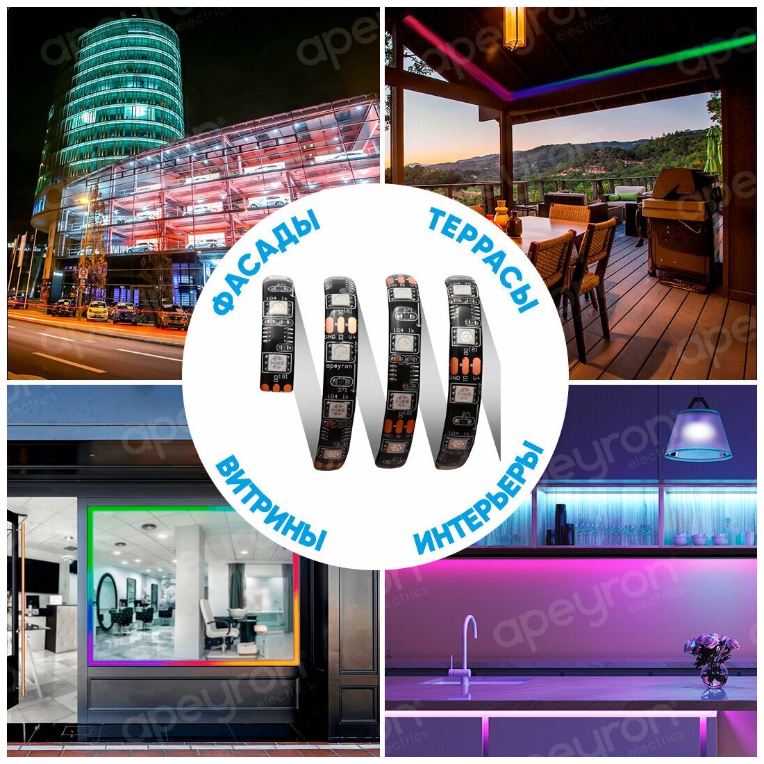 Светодиодная влагозащищенная лента Apeyron 144W/m 60Led/m 5050SMD разноцветная 5M 87ЦЛ