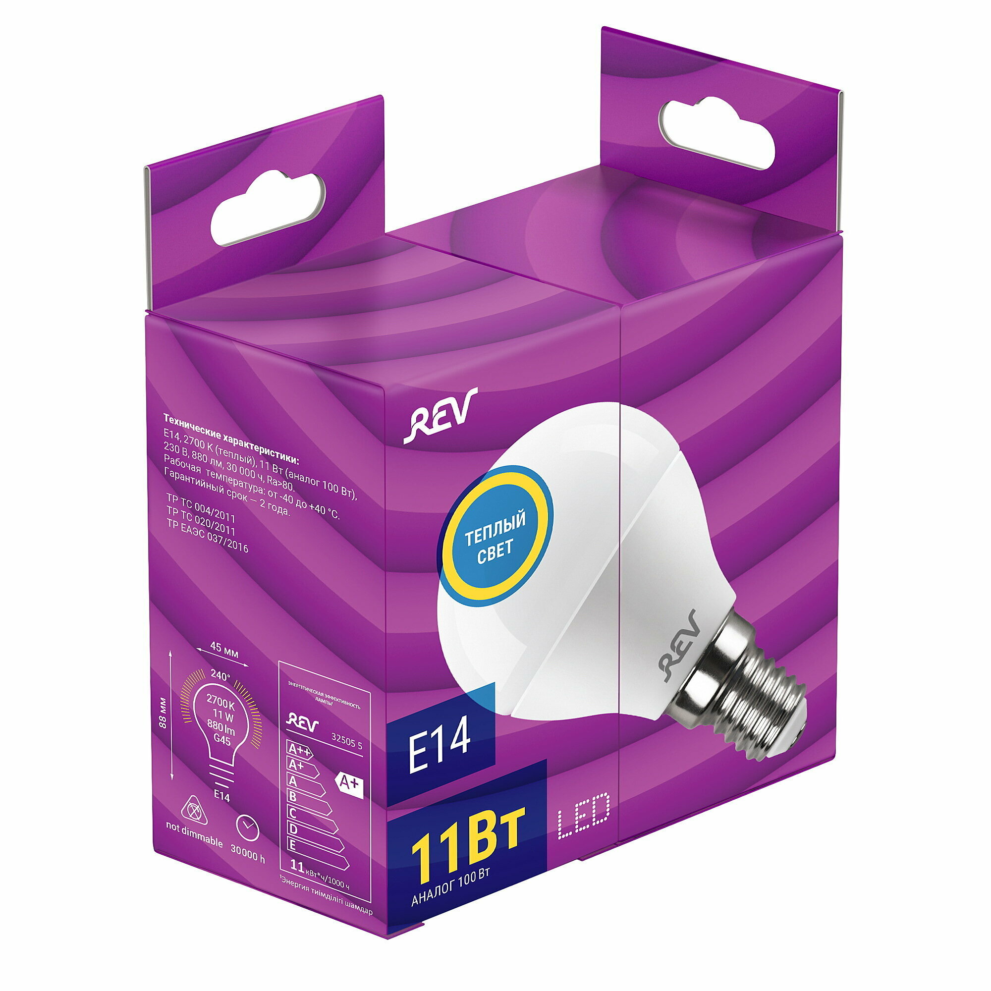 Лампа светодиодная REV G45 Е14 11W 2700K теплый свет шар 32505 5