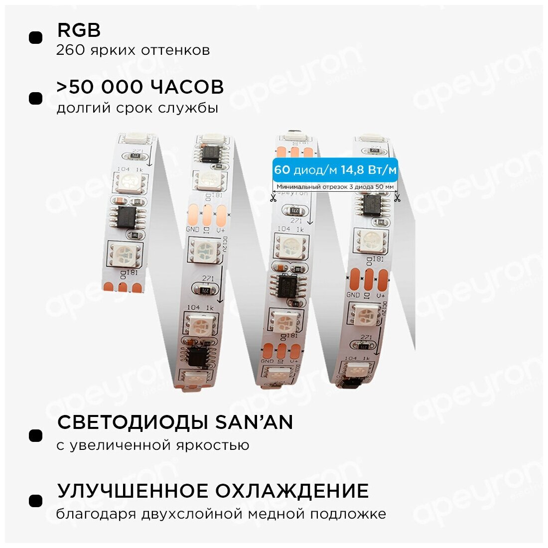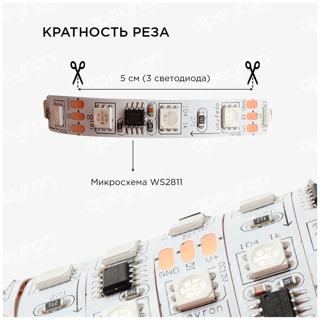 Светодиодная лента Apeyron 144W/m 60Led/m 5050SMD разноцветная 2M 80ЦЛ