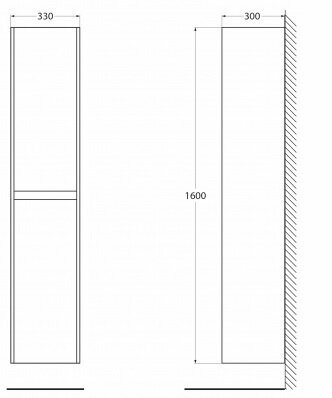 - Габариты (ШхВхГ): 330х1600х296 мм.