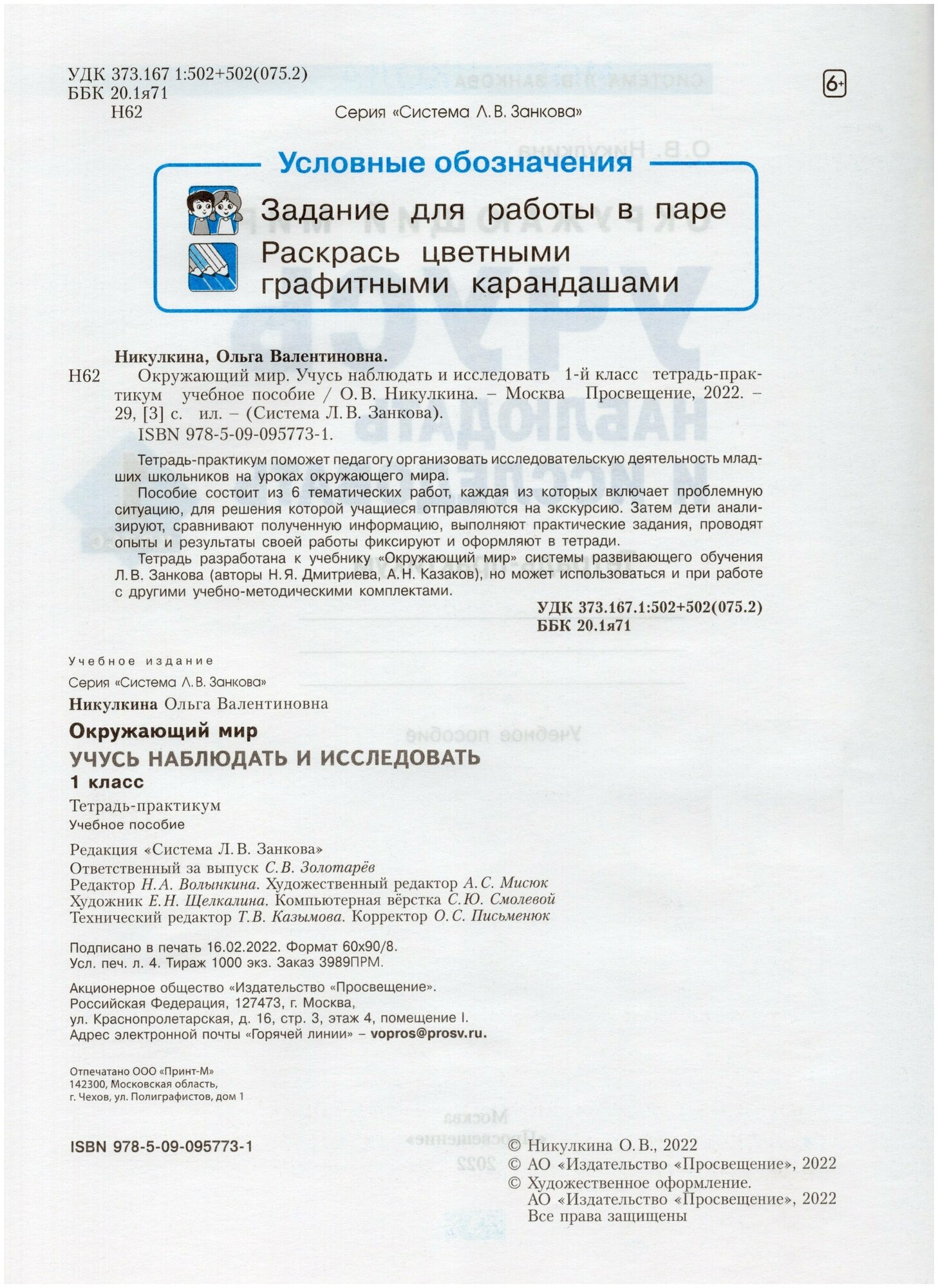 Окружающий мир. 1 класс. Учусь наблюдать и исследовать. Тетрадь-практикум (Никулкина Ольга Валентиновна); Просвещение, 2022