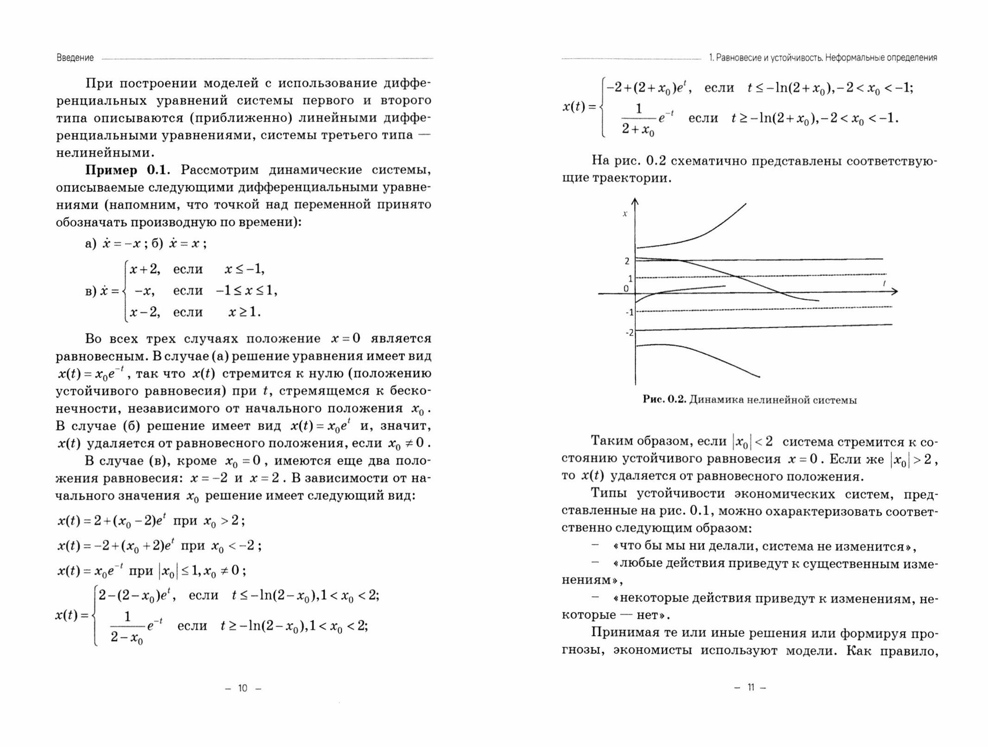 В монографии дается изложение основных понятий и фактов теории нелинейных моделей с целью показать возможности применения этих моделей в экономике и финансах. Изложение сопровождается примерами таких приложений. Изложение построено так, чтобы оно было доступно выпускнику экономического вуза. Лишь в отдельных параграфах используются более сложные концепции современной математики. Эти места могут быть пропущены при чтении без значительного ущерба для понимания существа дела и основных приложений. В то же время, компактное изложение современных представлений теории нелинейных динамических систем может оказаться полезным и для профессионального математика.