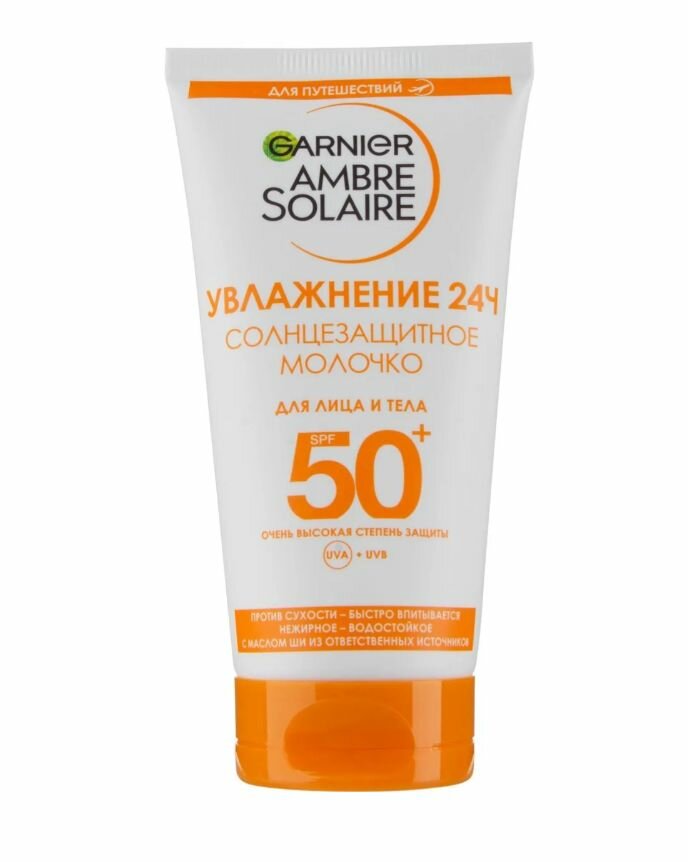 Garnier Солнцезащитное молочко для лица и тела Ambre Solaire, SPF 50+ содержит увлажняющую формулу, которая защищает от UVA + UVB-лучей и сухости для гладкой и шелковистой кожи. Формула, обогащенная маслом ши из ответственных источников. Легкая текстура быстро впитывается. Нежирное. Водостойкое.