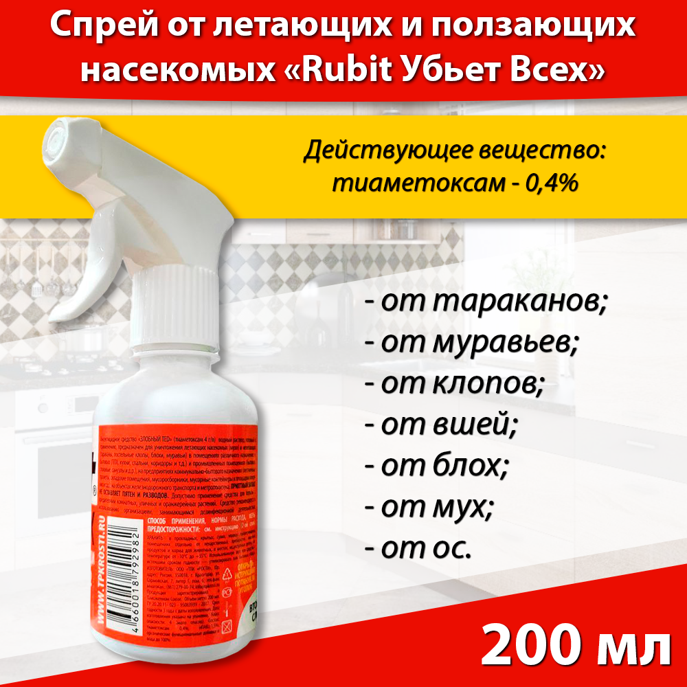Спрей от летающих и ползающих вредителей Rubit Убьет всех 200мл