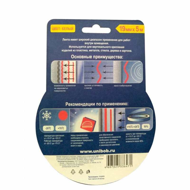 лента двусторонняя unibob д/внутренних работ 19ммх*5м (вспененная)47037