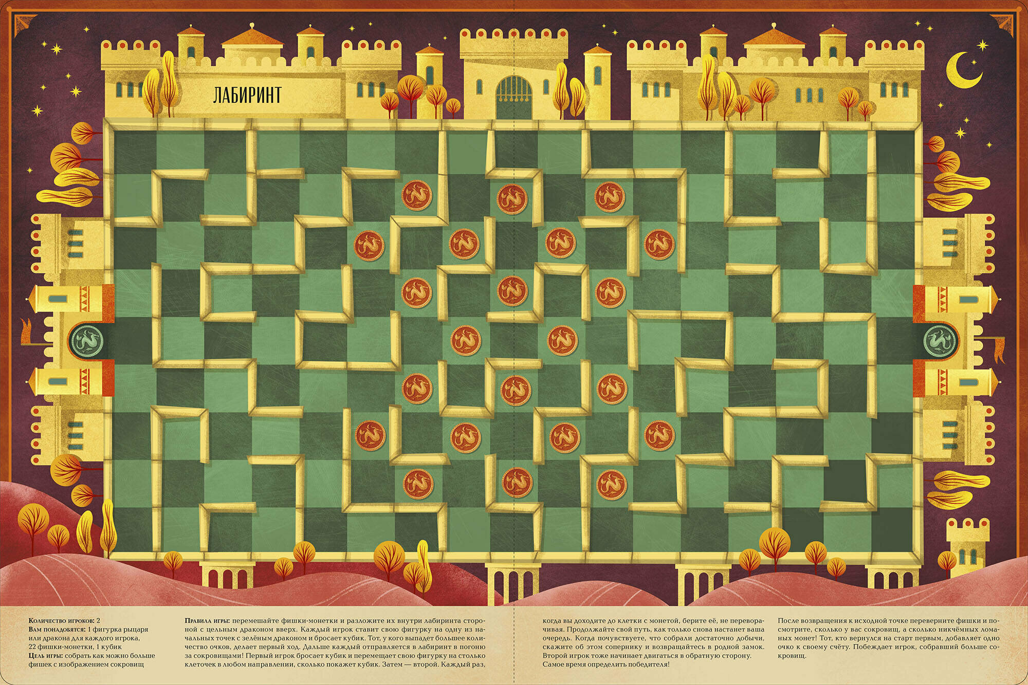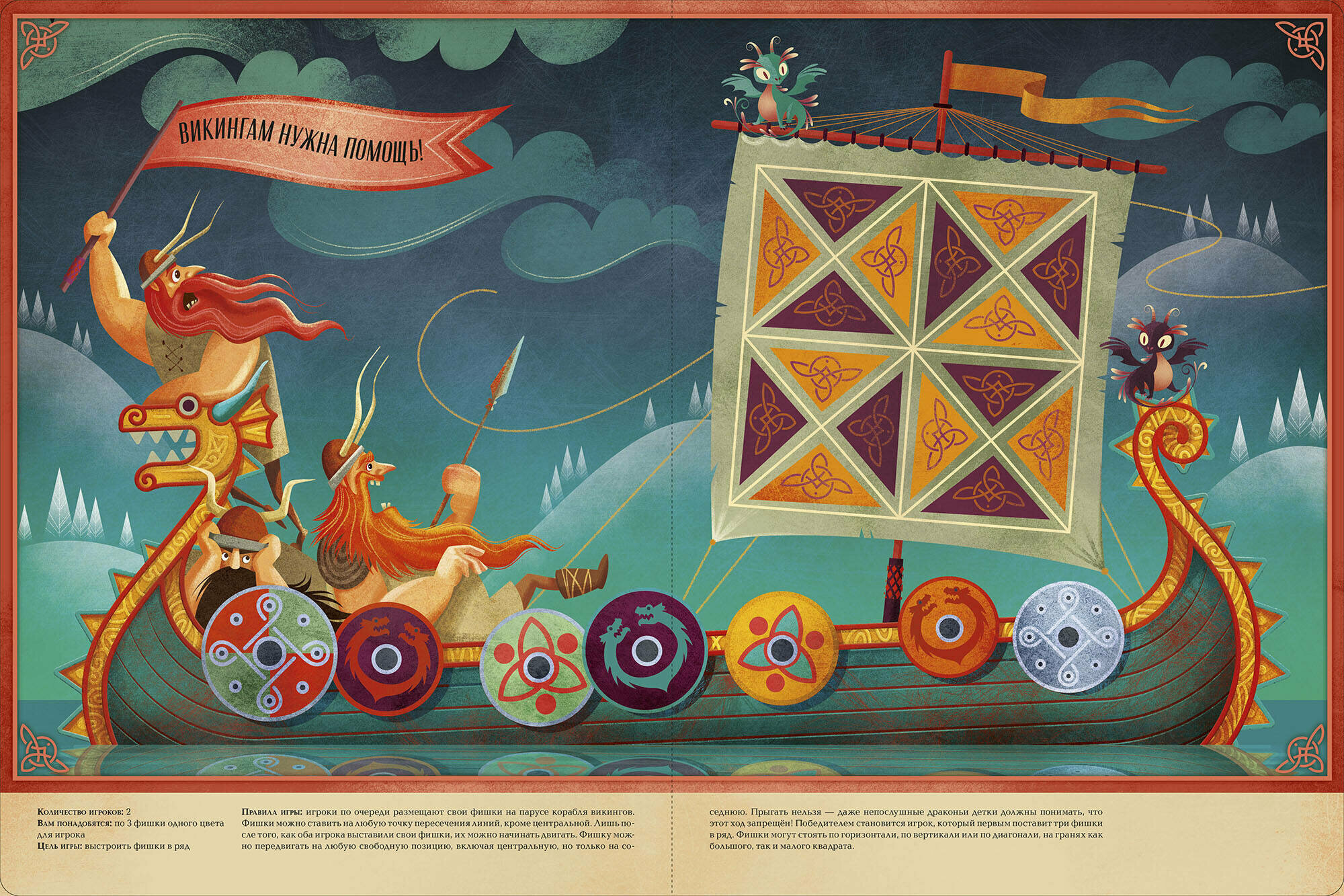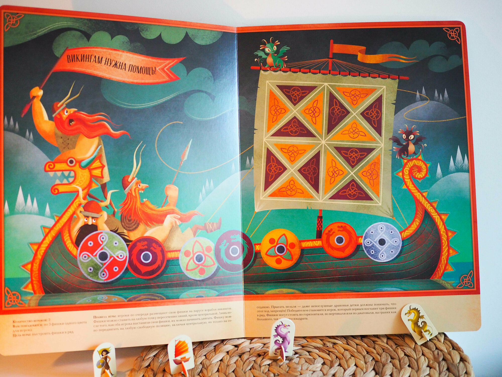 Книга с 8 настольными играми под одной обложкой унесет вас в загадочный и волшебный мир драконов и викингов! Вам предстоит пройти через запутанный лабиринт, найти сокровище, сразиться с драконом и вызволить из башни прекрасную принцессу. Восемь разворотов — восемь игровых полей, каждое из которых увлечет всю семью в новый удивительный мир, созданный иллюстратором Анной Ланг. Все фишки и фигурки, а также самосборный кубик уже входят в книгу: играть можно дома, в гостях и даже в дороге.