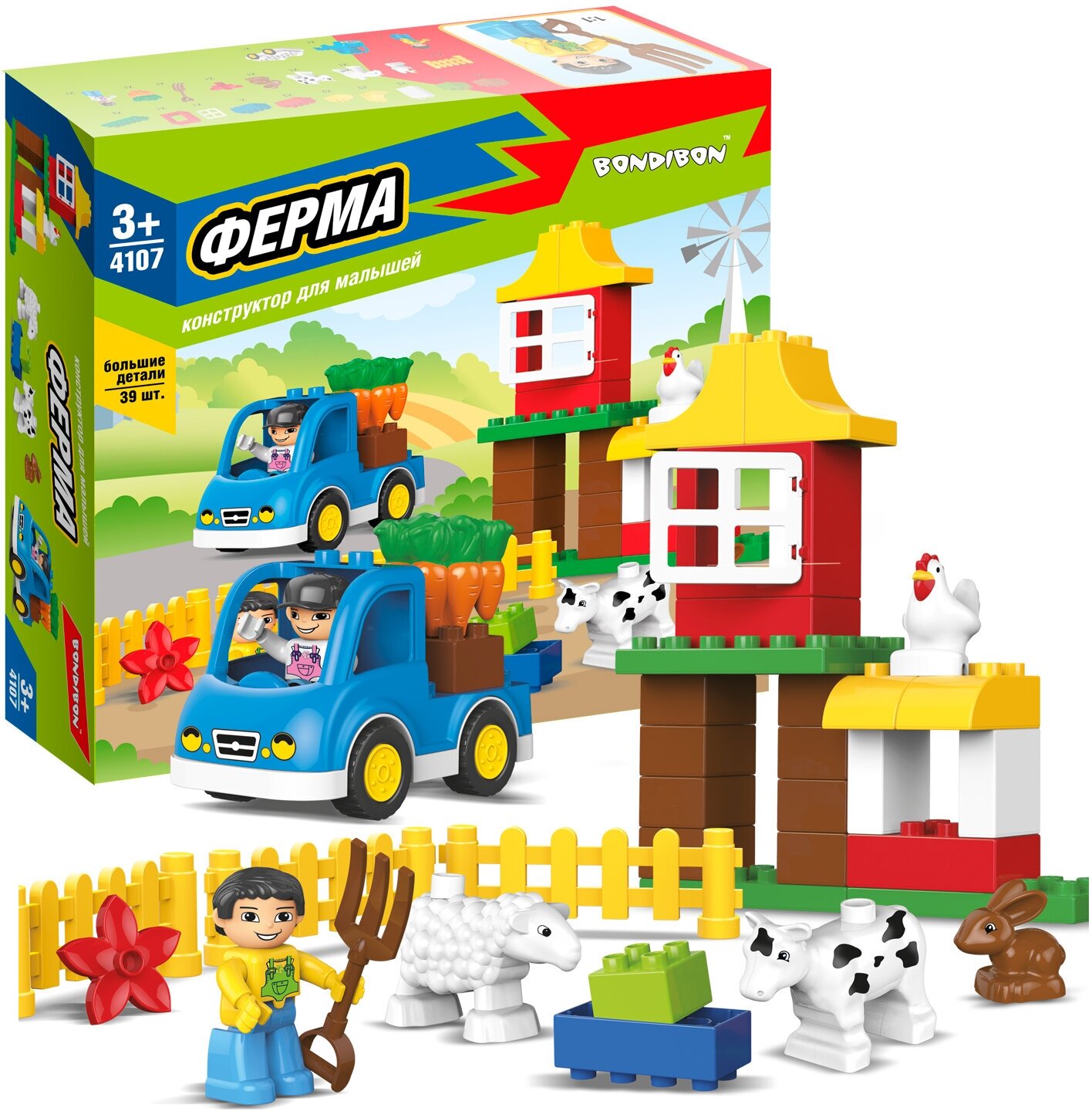 Конструктор Ферма большие детали 39 деталей Bondibon