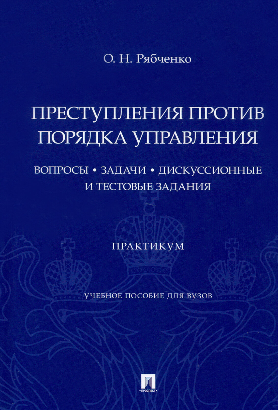 Преступления против порядка управления. Вопросы задачи дискуссионные и тестовые задания. Практикум (Рябченко Оксана Николаевна); Проспект, 2022