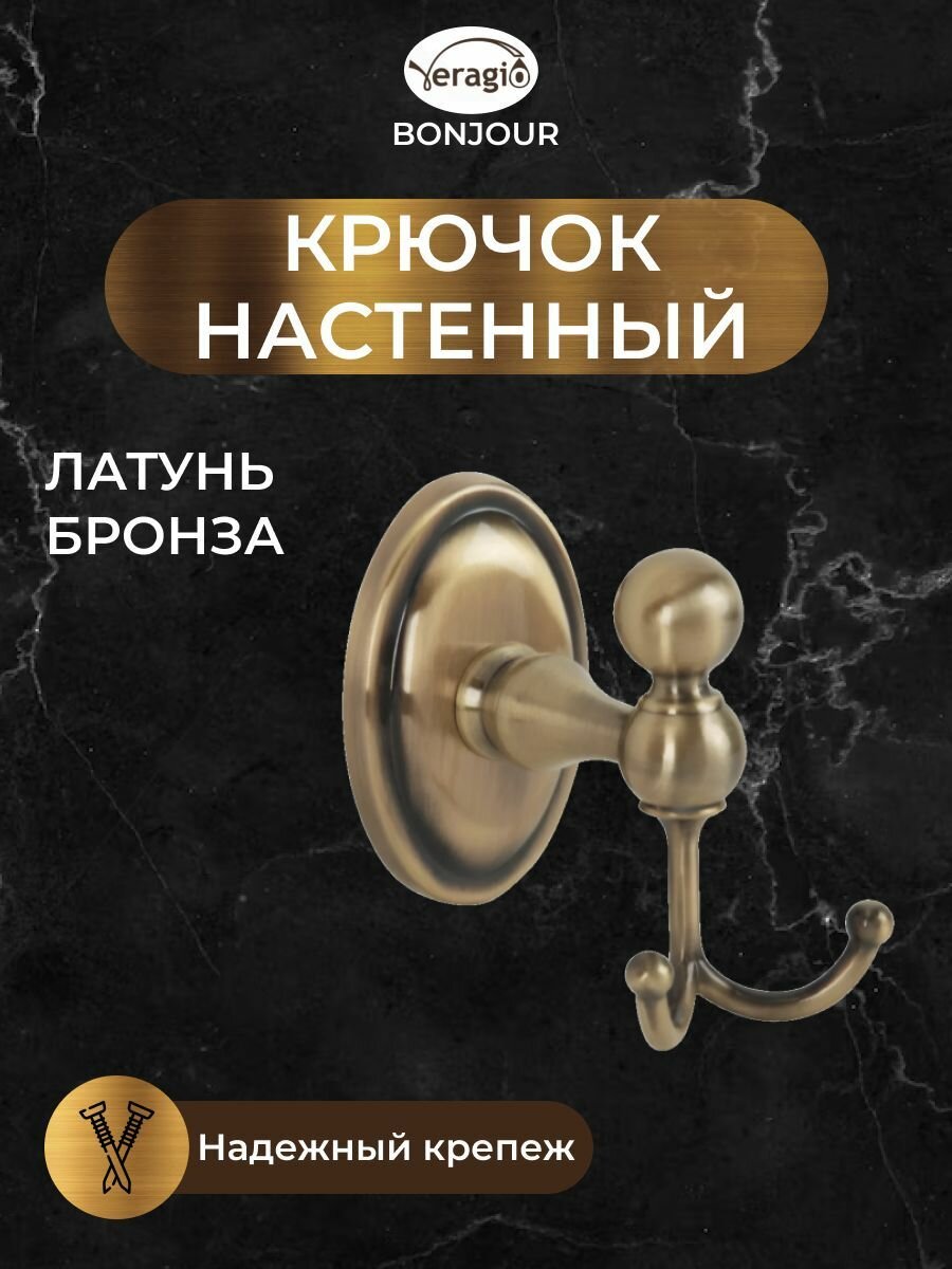Крючок VERAGIO BONJOUR VR.BNR-7833.BR станет незаменимым аксессуаром санузла. Оптимальные габариты и два ответвления с закругленными концами отлично подходят для размещения на крючке махровых халатов и полотенец. Аксессуар изготовлен из латуни и покрыт бронзовым напылением.