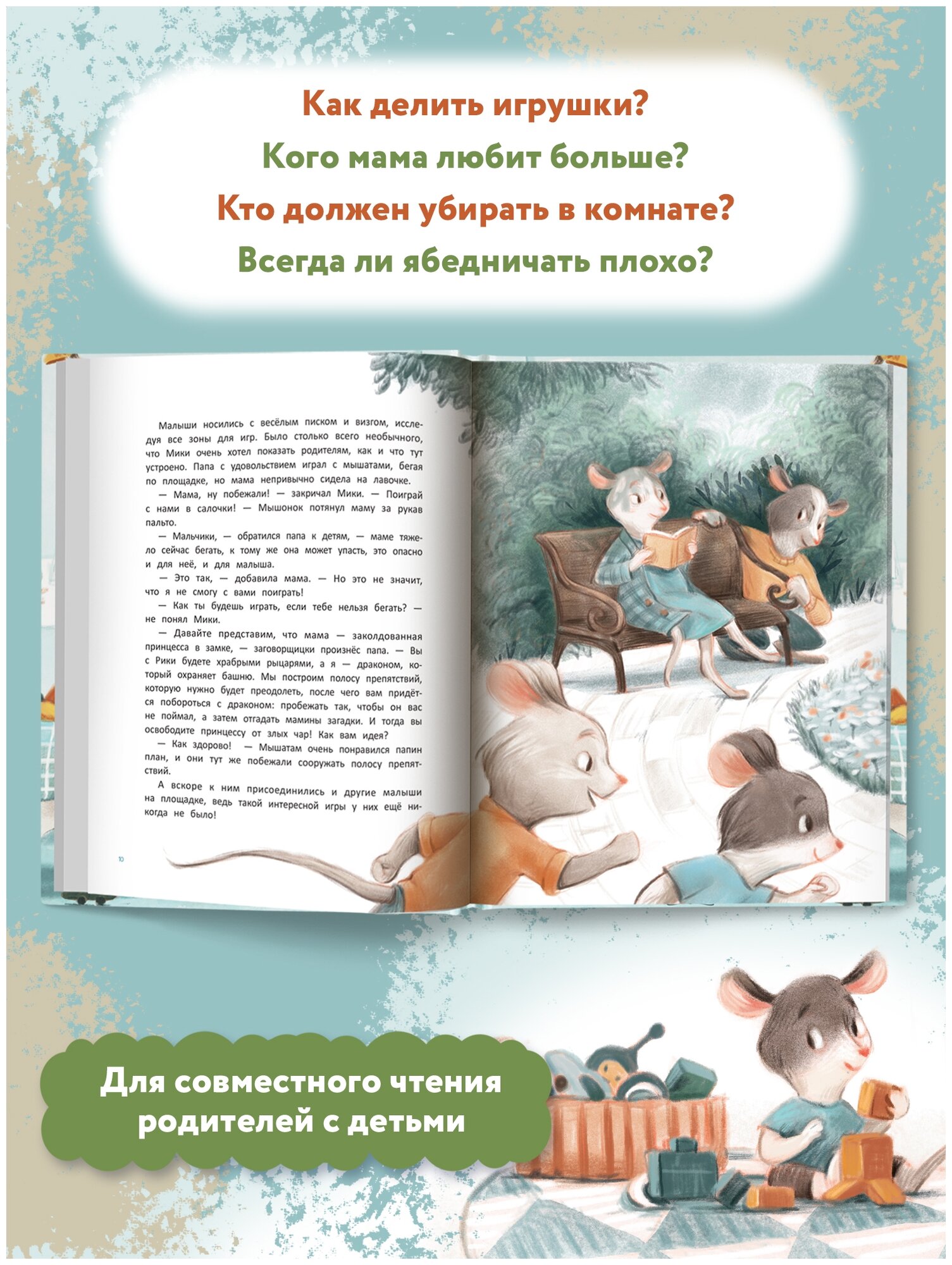 Дорогие дети и их родители! В этой книге вы найдёте добрые и поучительные истории о мышатах Мики и Рики. В каждой главе герои попадают в ситуации, знакомые всем детям, которые растут вместе с братьями или сестрами. Как поделить новую игрушку? Кого мама любит больше? Кто должен заниматься уборкой? Всегда ли ябедничать плохо? Как выходить из конфликта и как сообщить ребёнку о скором пополнении в семье?