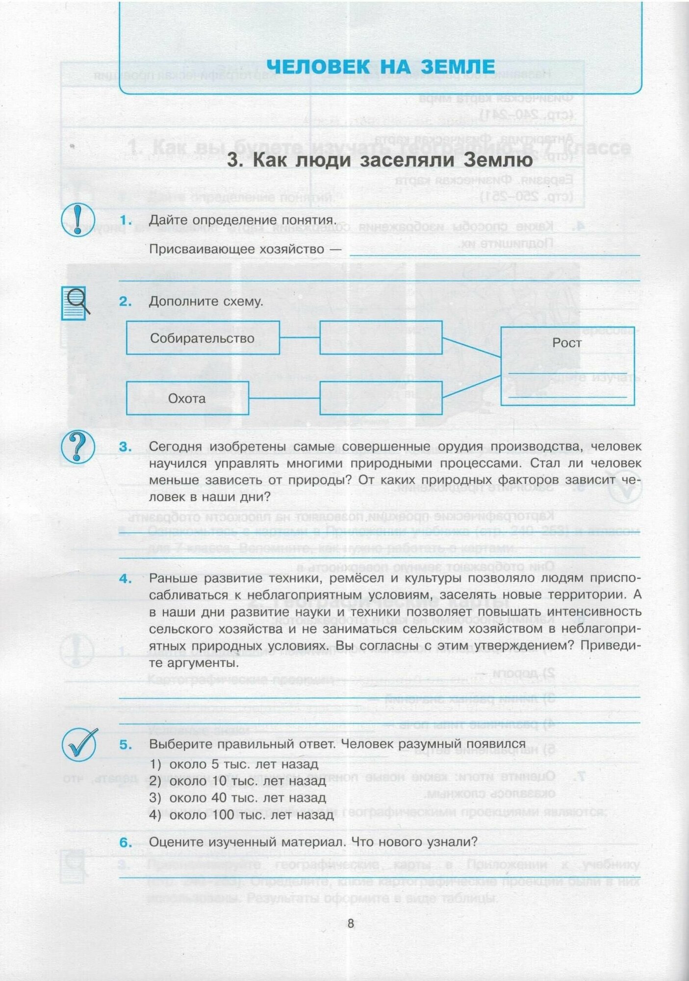 Предлагаемое пособие включает разнообразные виды заданий, направленные на развитие познавательного интереса учащихся, повышение мотивации к обучению, отработке предметных и метапредметных умений и навыков. В рабочую тетрадь включены необходимые контурные карты и задания по работе с ними. Особый раздел составляет проектно-исследовательский блок, реализующий практико-ориентированную составляющую курса географии, а также рефлексивно-оценочный блок, помогающий определить успехи в обучении. В пособии представлены все практические работы, предусмотренные программой, даны алгоритмы и методика их выполнения.