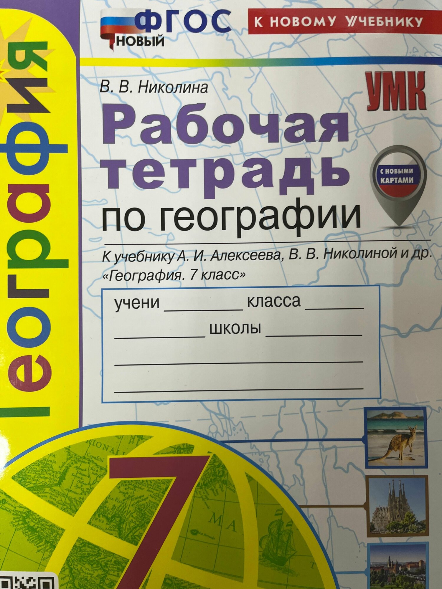 Сервис сравнения цен СкидкаГИД предлагает сравнить цены на товар «Книга: География 7 класс Рабочая тетрадь с комплектом контурных карт К учебнику А И Алексеева В В Николиной и др География 7 класс М Просвещение (Николина Вера Викторовна); Экзамен, 2023»
