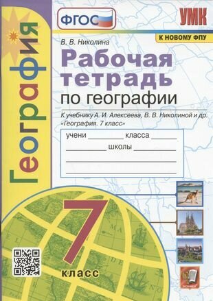 География 7 класс Рабочая тетрадь с комплектом контурных карт К учебнику А И Алексеева В В Николиной и др География 7 класс М Просвещение (Николина Вера Викторовна); Экзамен, 2023