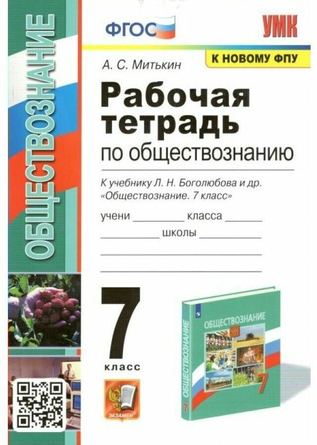 Рабочая тетрадь по обществознанию 7 класс К учебнику Л Н Боголюбова и др Обществознание 7 класс М Просвещение (Митькин Александр Сергеевич); Экзамен, 2023