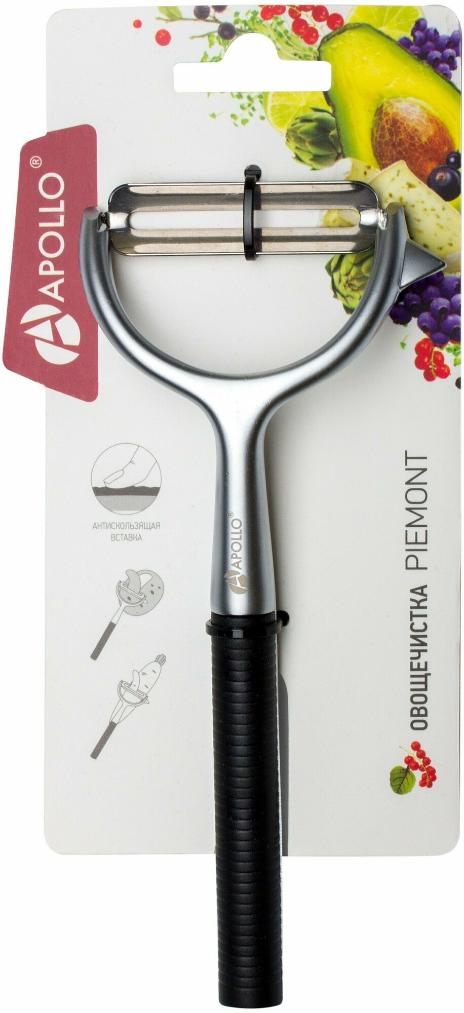 APOLLO - овощечистка, которая предназначена для аккуратного удаления кожуры с овощей и фруктов. Изготовлена из цинкового сплава и пищевого пластика. Удобная овощечистка позволит вам быстро справиться с чисткой корнеплодов. Она имеет крючок для удаления небольших дефектов, поэтому вы с легкостью удалите поврежденные участки. Овощечистку не рекомендуется мыть в посудомоечной машине.