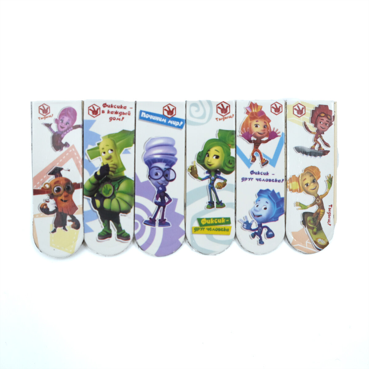 Магнитные закладки 'Фиксики' изготовлены из пластика с магнитной полосой. Магнитными закладками очень удобно пользоваться – они не потеряются и не выпадут, не испортят и не помнут листы книг или тетрадей. Такие закладки позволят приучить школьника к порядку, бережному обращению с книгами и учебниками. Яркий дизайн с персонажами мультфильма поможет создать праздничное настроение в любом месте: в офисе, на уроке в школе, на университетской лекции.Упакованы в пакет с европодвесом.В комплекте 6 закладок с разными рисунками.