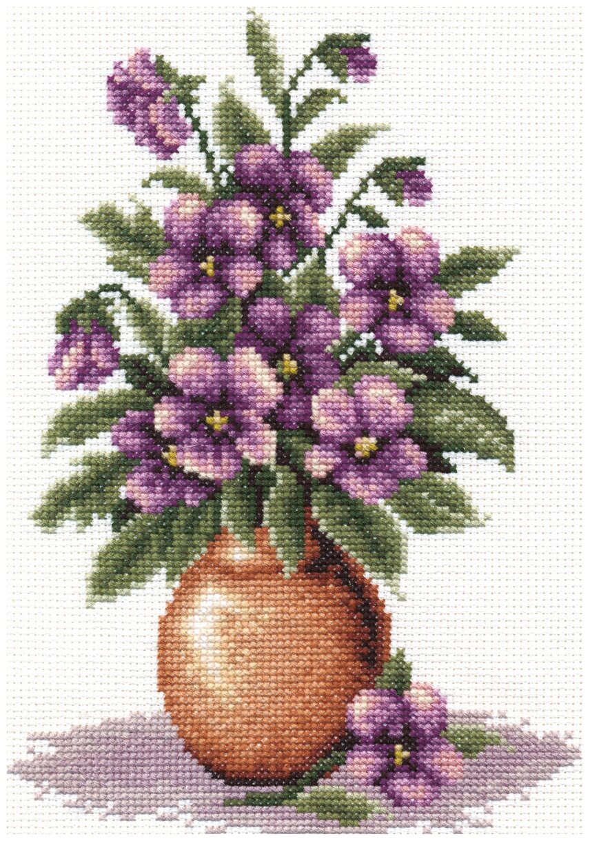 Набор для вышивания "PANNA" C-0154 "Букет анютиных глазок" 17x24,5 см. Набор для вышивания включает все, что необходимо для создания шедевра своими руками: канва аппретированная "Gamma" К04, хлопчатобумажные нитки мулине "Gamma" на держателе, специализированная игла с тупым концом "Gamma" для вышивания, подробная инструкция по вышиванию и схема. Анютины глазки - символ семейного благополучия, доверительных отношений и верности. Все материалы высокого качества, с которыми удобно работать, а результатом работы с которыми - можно только наслаждаться. Заполнение: Частичное. Кол-во цветов: 22. Уровень сложности: 2
