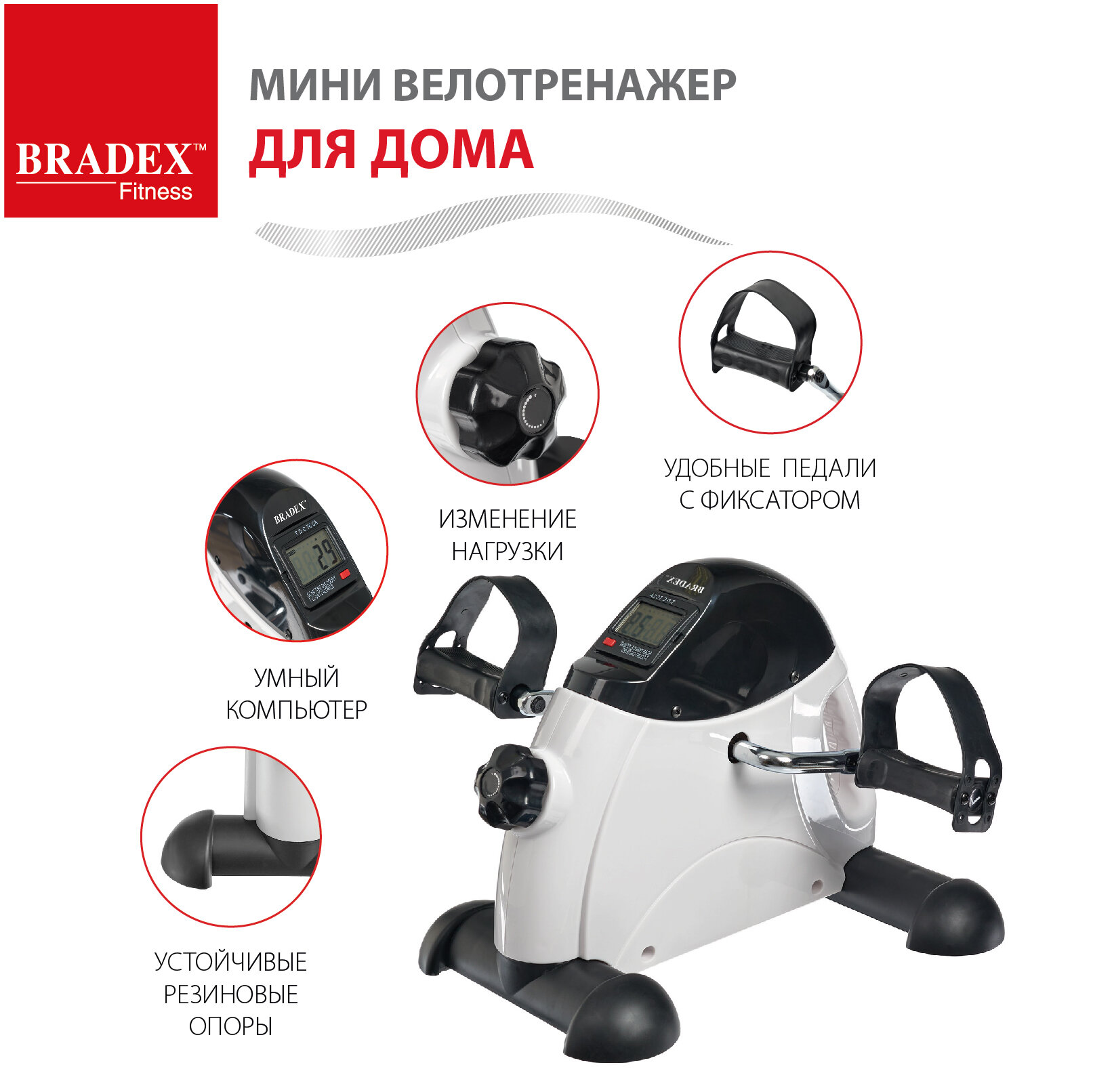 Мини велотренажёр Bradex — один из самых компактных и простых домашних тренажеров. В отличие от обычных велотренажёров у него нет стойки с сиденьем, поэтому его можно установить там, где вам удобно, расположиться относительного него под любым углом и на любой высоте. Можно тренироваться, даже сидя в любимом кресле перед телевизором или прямо на рабочем месте.
