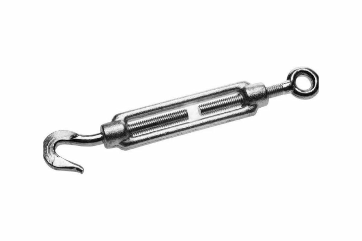 | Дополнительно | 1. Изготовлен из оцинкованной стали 2. Применяется для регулировки натяжения цепей и тросов 3. Состоит из кованой натяжной муфты и резьбовых стержней с крюкомкольцом |