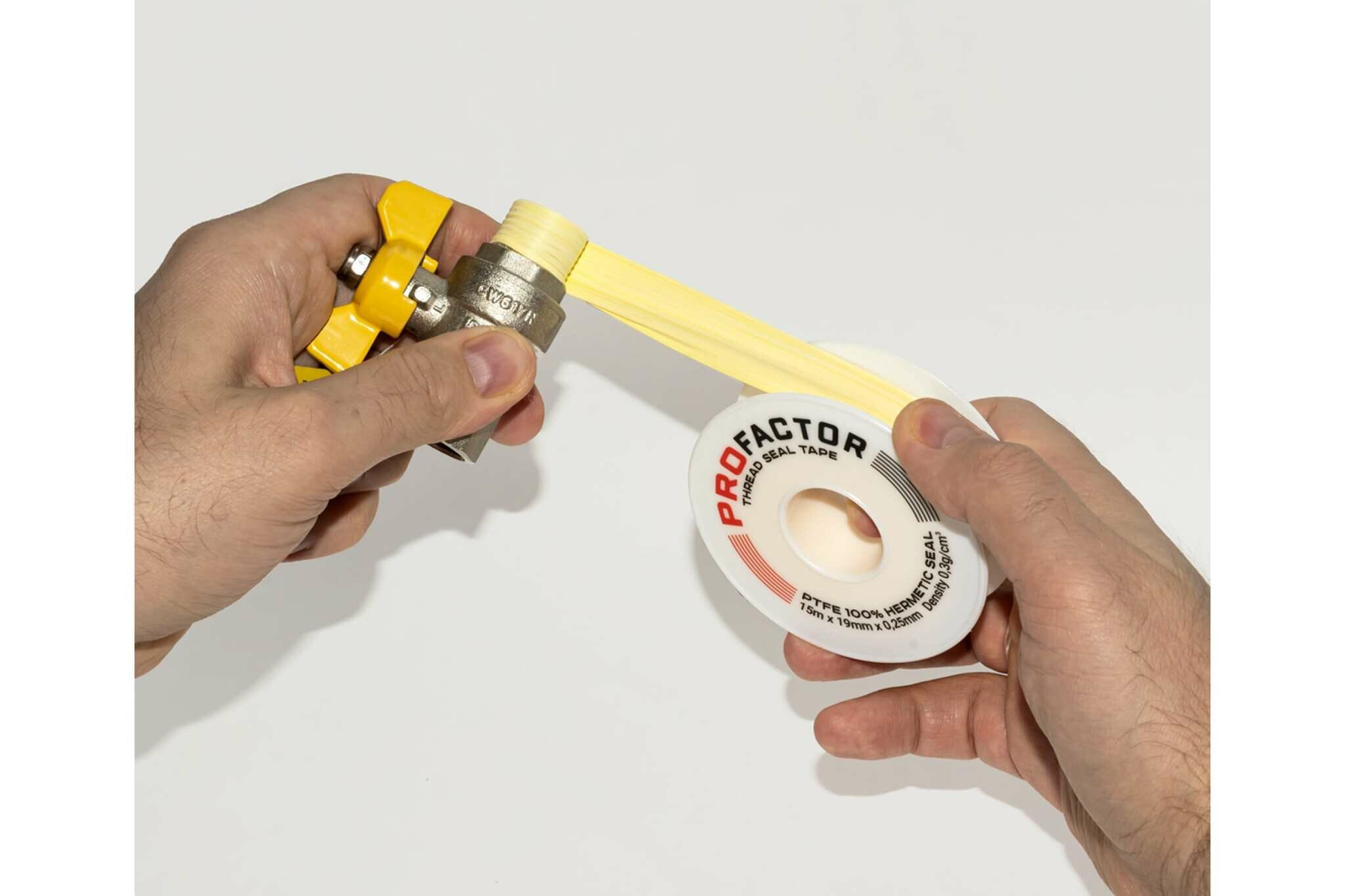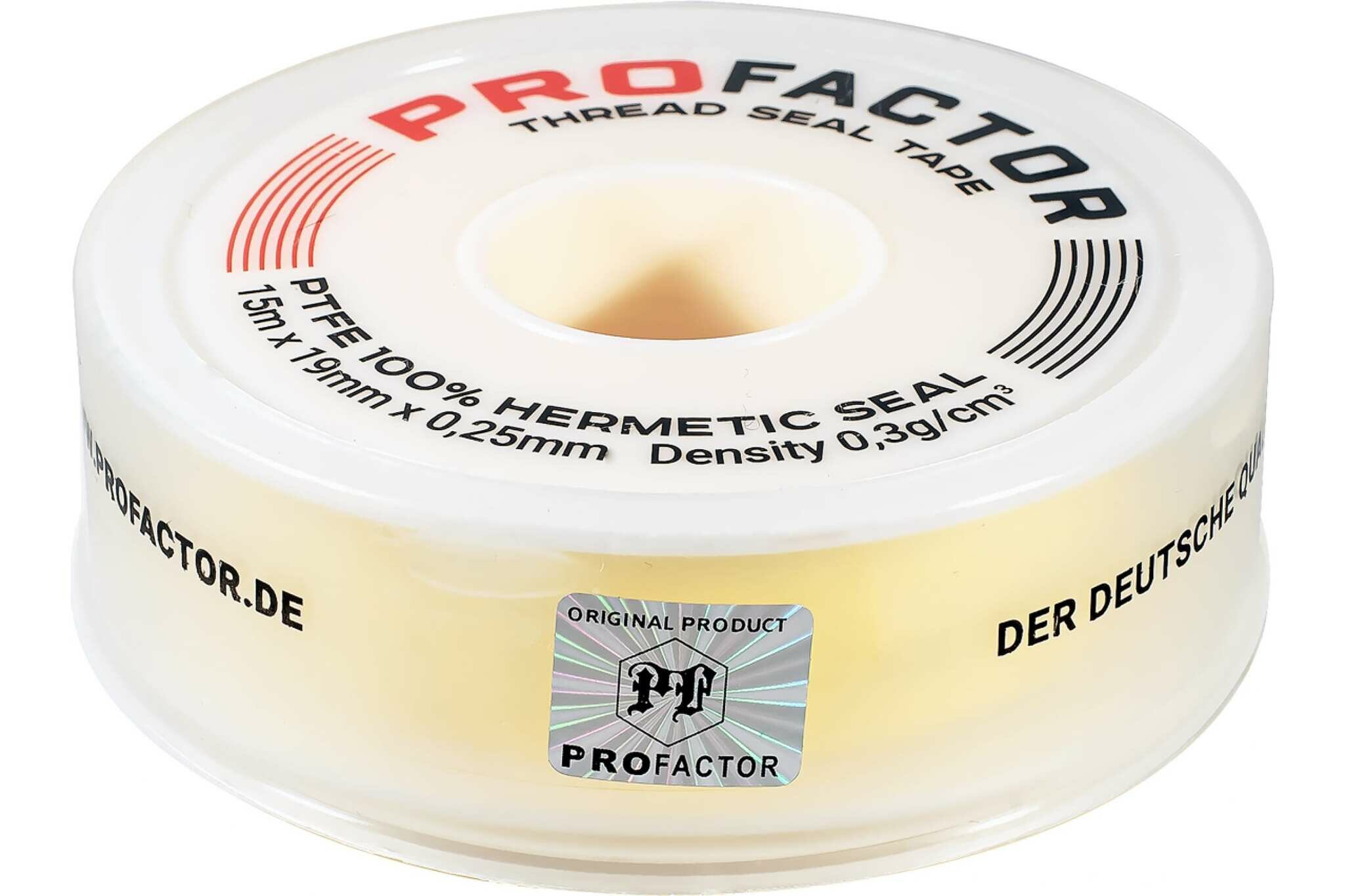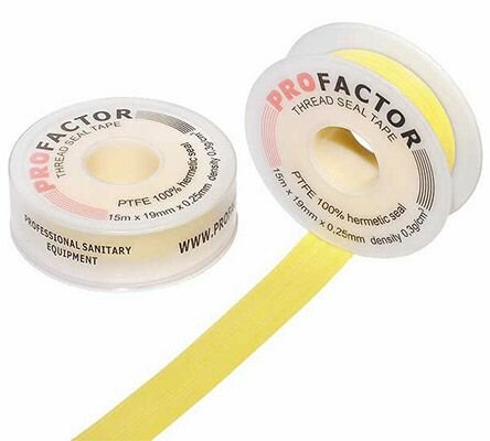 ФУМ лента PROFACTOR PF Professional желтая Ф85 мм 19мм х 0,25мм х 15м PF FE 531 применяется для уплотнения и надёжной герметизации резьбовых соединений при монтаже любых трубопроводных систем, работающих при номинальном давлении 16 бар и температурном диапазоне от -60 до +200 °С. Каждая катушка оригинального товара имеет защитную от фальсификации голограмму.