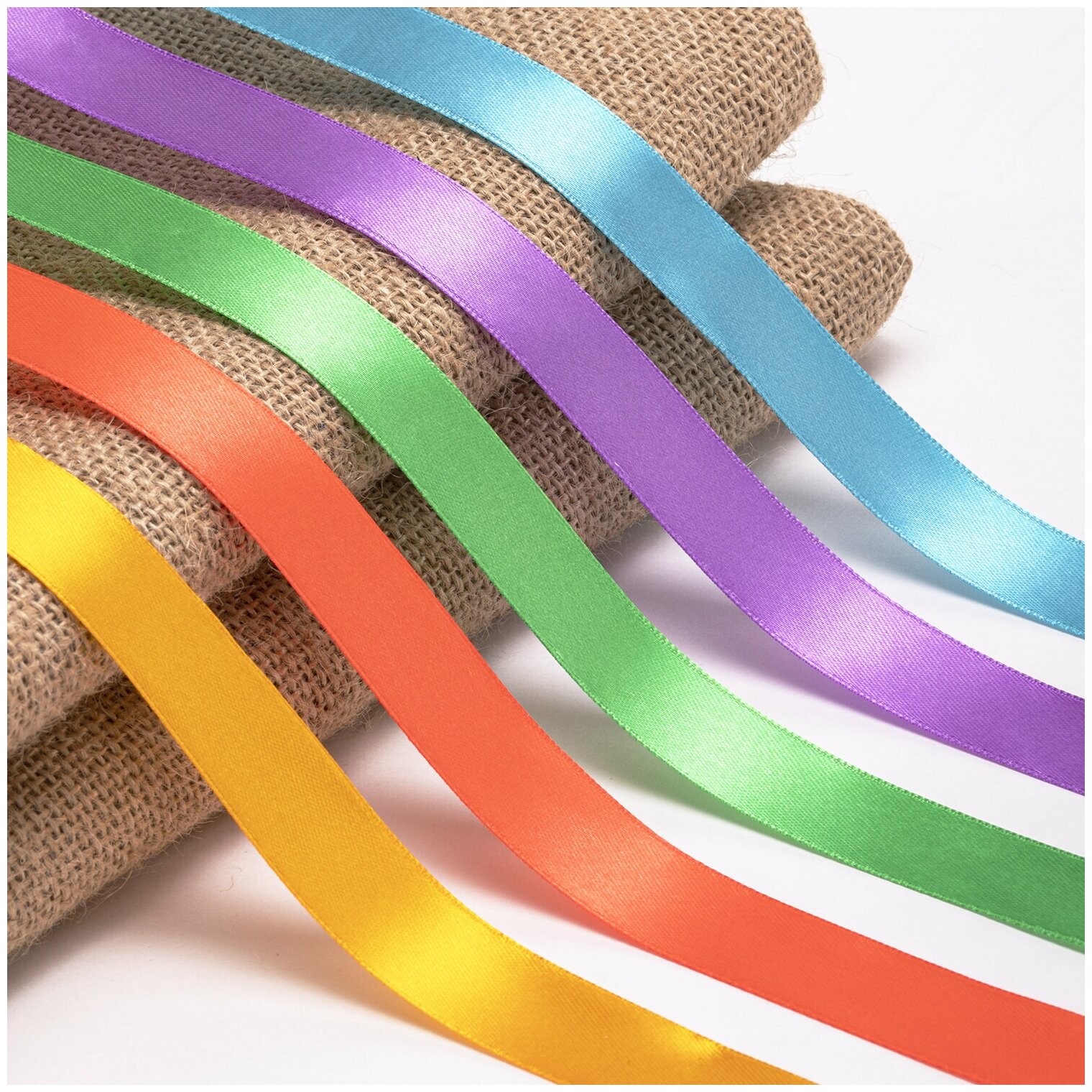 Атласная лента является универсальным текстильным изделием, что обусловлено широкой сферой ее использования. Набор лент атласных предназначен для оформления подарков, рукоделия, декора, а также используется во флористике для оформления букетов. Изделие представляет собой набор из атласных лент, изготовленных из 100% полиэстера, с ткаными кромками на обоих краях. Кромка на краях лент выполнена с применением полиэстеровой нити. Ленты изготовлены с применением саржевого способа переплетения нитей. В набор входит 5 лент голубого, фиолетового, зеленого, желтого и красно-оранжевого цветов шириной 20 мм (± 3%) и длиной 23 м, каждая из которых намотана на втулку из пенополистирола. Набор лент упакован в термоусадочную пленку, содержащую этикетку с краткой информацией о товаре.