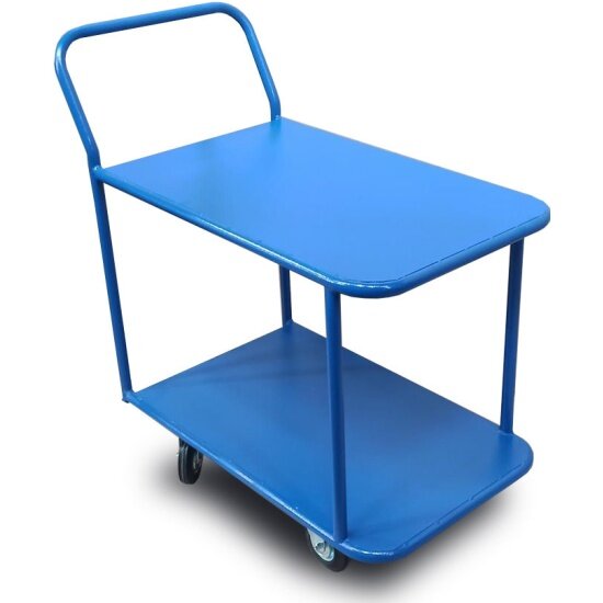 Тележка 2-х ярусная КП-2 200-К – усиленная модель открытого типа с двумя металлическими платформами. Способна перевозить малогабаритные, штучные грузы. На тележке удобно сортировать и перемещать разные товары и предметы. Фанерные листы улучшают внешний вид и характеристики для работы в заведениях.