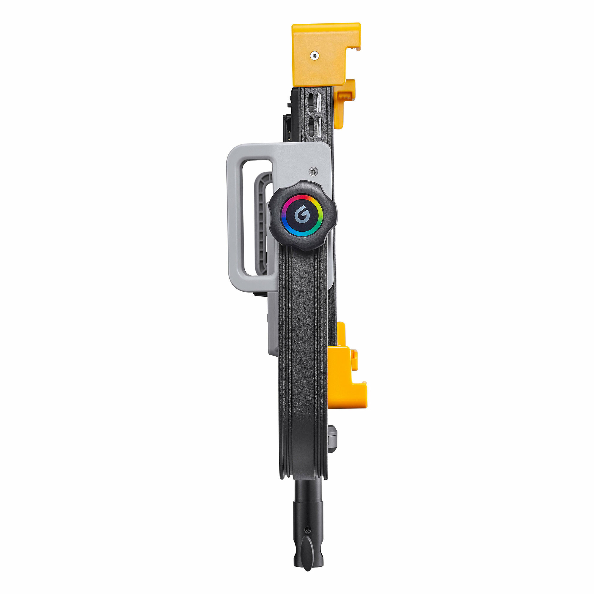 RGB-осветитель, мощность 150 Вт, цветовая температура 2500-8500К, режимы работы: RGB/HIS/режим имитации светофильтров/14 категорий спецэффектов, встроенный микрофон для режима светомузыки в реальном времени. Отключаемый вентилятор для бесшумного режима работы. Аккумуляторная площадка V-mount. Возможность дистанционного управления по BlueTooth со смартфона, пульта ДУ 2.4 Ггц или пульта DMX. Кейс с наплечным ременём в комплекте.