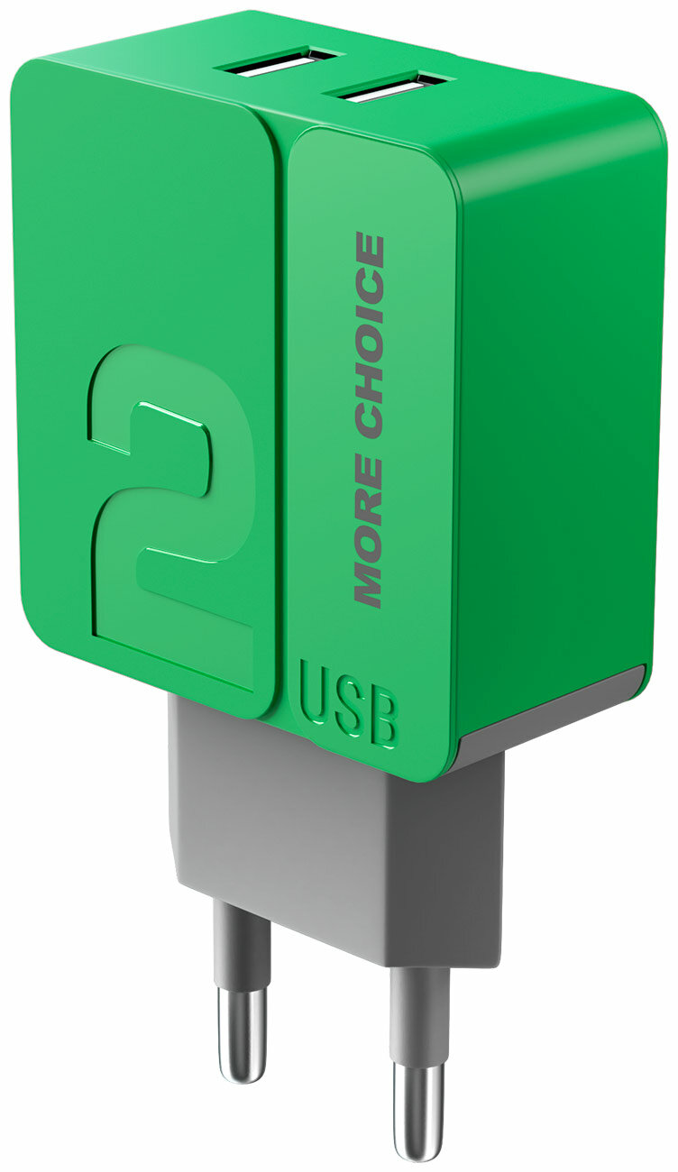 Сетевое зарядное устройство More choice 2USB 2.4A для Type-C NC46a 1м (Green) NC46ag