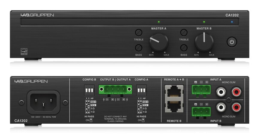 Двухканальный трансляционный усилитель мощностью 2 x 120 Вт. Совместим как с низкоомной акустикой Low-Z (4/8 Ом), так и c высокоомной - High-Z (70/100 В), обладает исключительной гибкостью на каждом канале. Автоматическое включение/выключение питания в зависимости от входного сигнала, через 20 минут простоя переходит в спящий режим. Прост в установке и эксплуатации даже для нетехнического персонала. Идеально подходит для баров и ресторанов, магазинов, гостиниц, корпоративных, образовательных и других мест, где требуется фоновая музыка и/или система громкой связи. Имеет резиновые ножки, что позволяет размещать усилитель на столе, полке или любой другой поверхности, также с помощью прилагаемых кронштейнов усилитель можно прикрепить к стене или под столом/полкой. Опциональный монтажный комплект для установки в рэк позволяет разместить 1 или 2 усилителя в юнит.