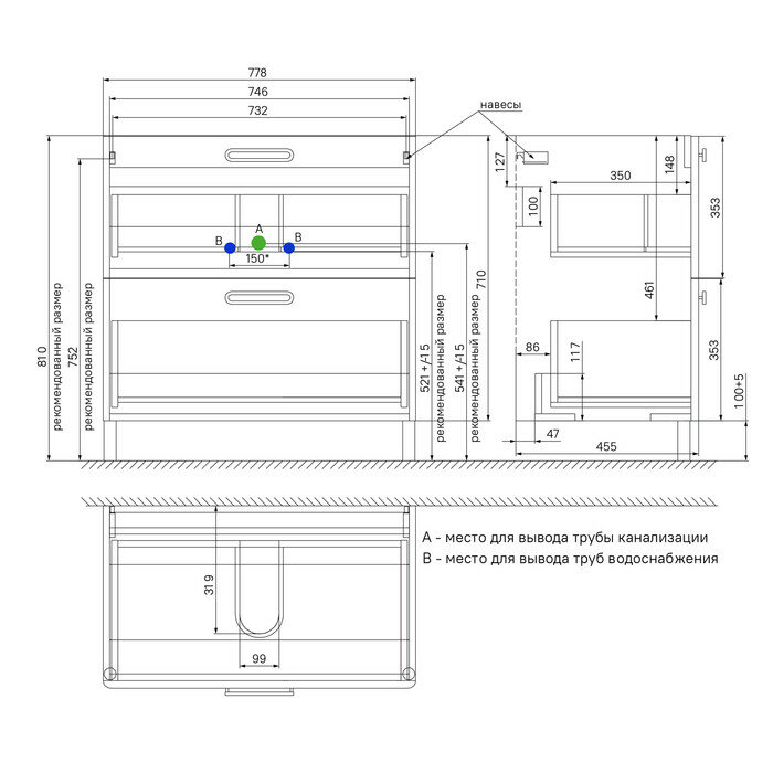 | СПЕЦ ГРУППА - Мебель для ванной | Тумбы под раковину, Тумбы под раковину шириной 80 см, Тумбы под раковину с двумя ящиками |