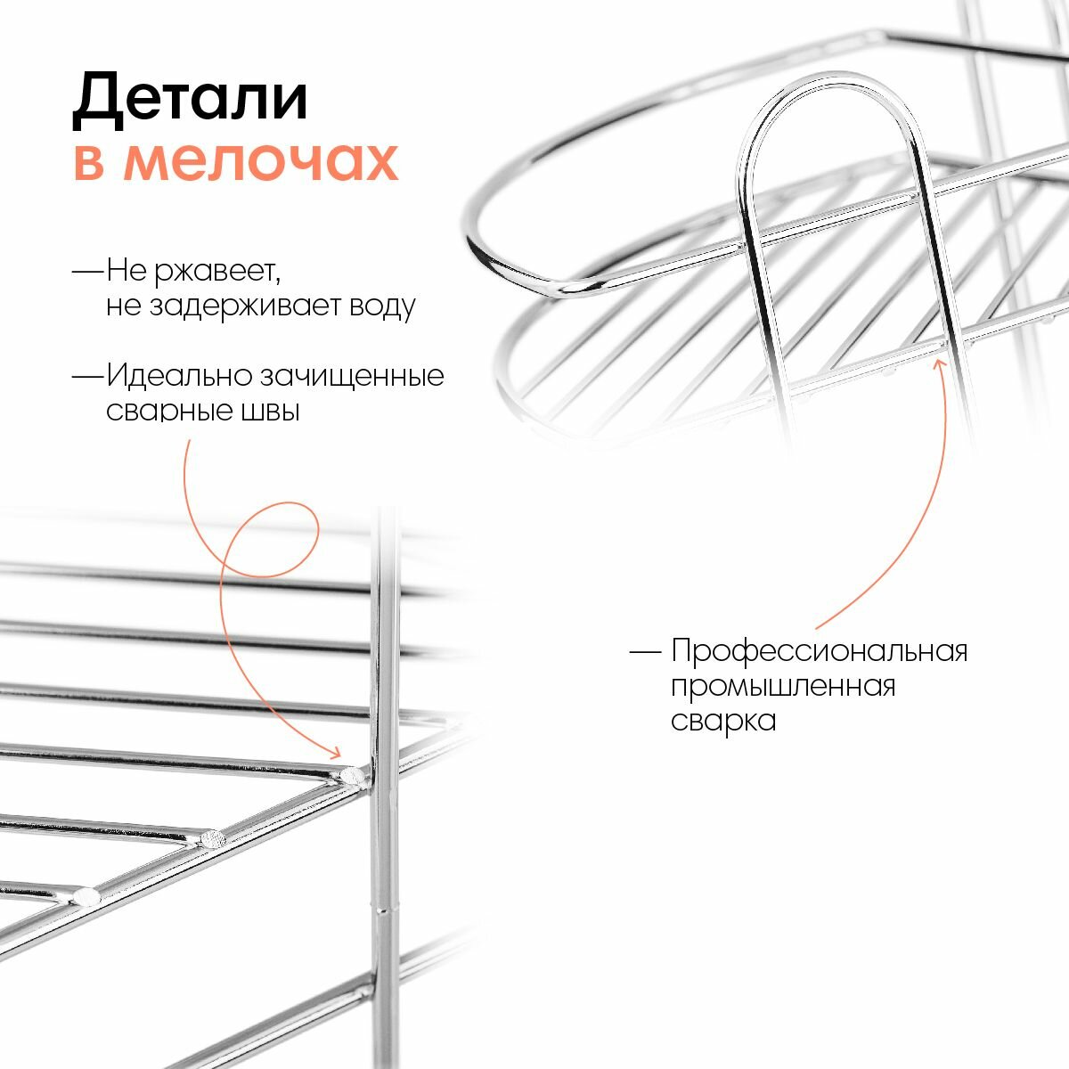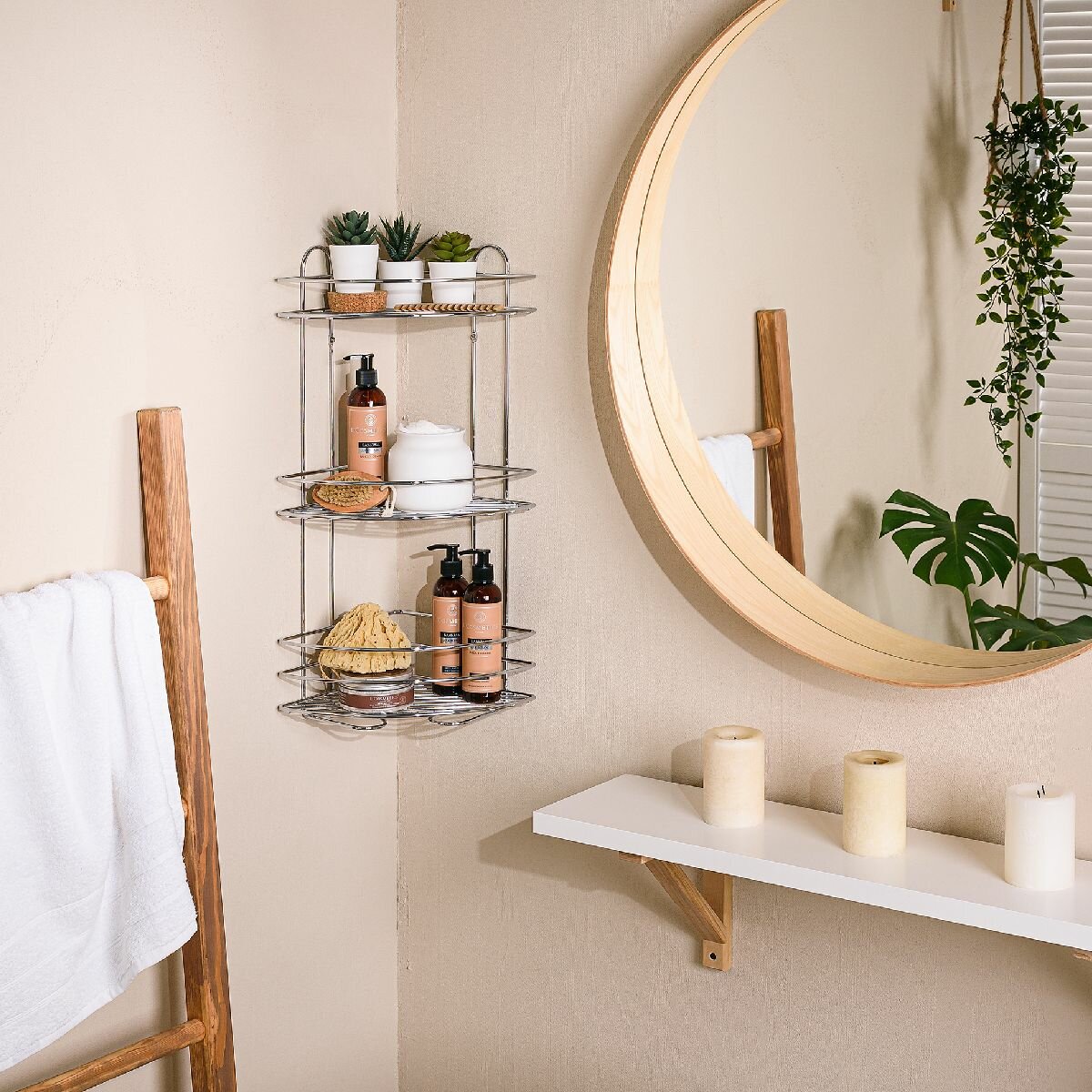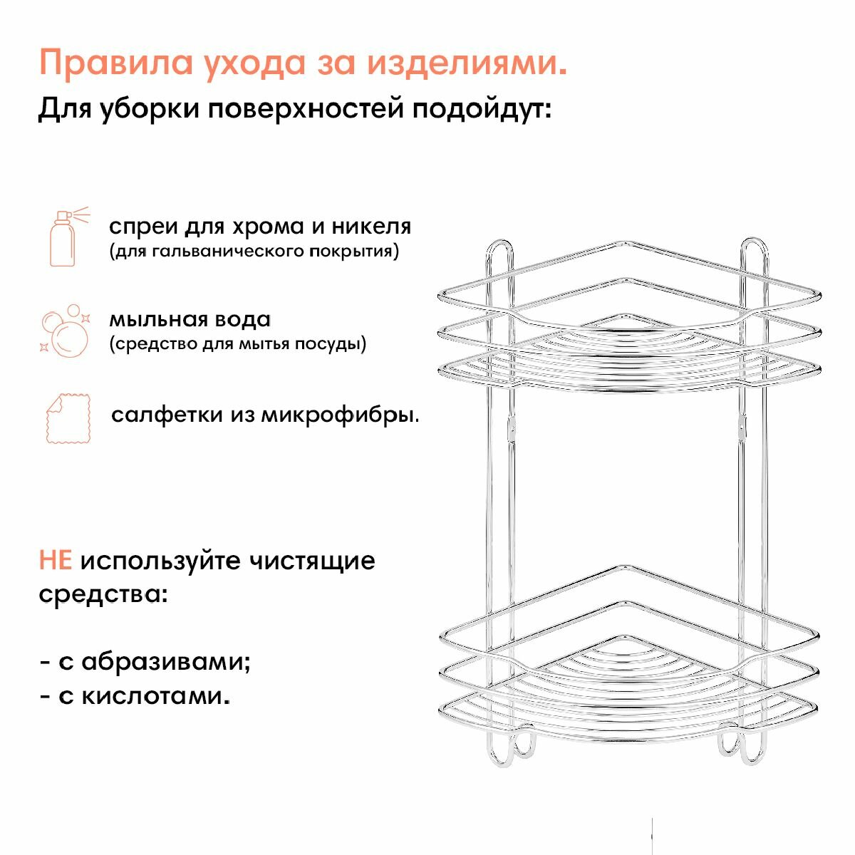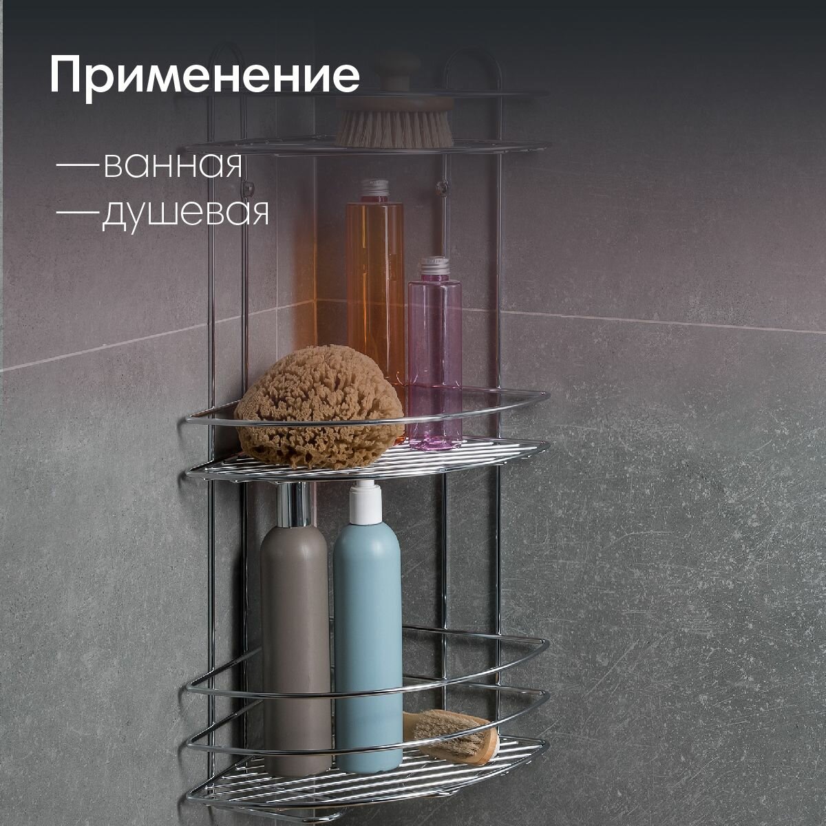 Угловая полка для ванной от бренда ЧМЗ - стильный аксессуар для грамотной организации пространства в ванной комнате. Трехъярусный органайзер из стального материала с нержавеющим антигрибковым покрытием выдерживает вес в 20 кг. Изделие выполнено в удобном для углового подвешивания размере: общая высота 58,5 см, ширина боковой части 23,4 см. Расстояние между полками - 23,9и 23,8 см. Расстояние от угла до крепления - 13,1 см. Модель в стиле лофт предполагает крепление на саморезы с дюбелем (2 штуки), с фурнитурой в комплекте из нескольких предметов (шайбы и колпачки). На конструкции присутствуют усиленные крючки для мочалок. Вместительная полка из стали сочетается с любым интерьером ванной комнаты. Высокие бортики не позволят упасть сосудам с уходовой косметикой, а металлические прутки разного диаметра - 4.5 мм и 2.8 мм продляют срок использования изделия. Для сохранения безупречного внешнего вида полки при уходе за ней рекомендуется использовать щадящие моющие средства и мягкую салфетку.