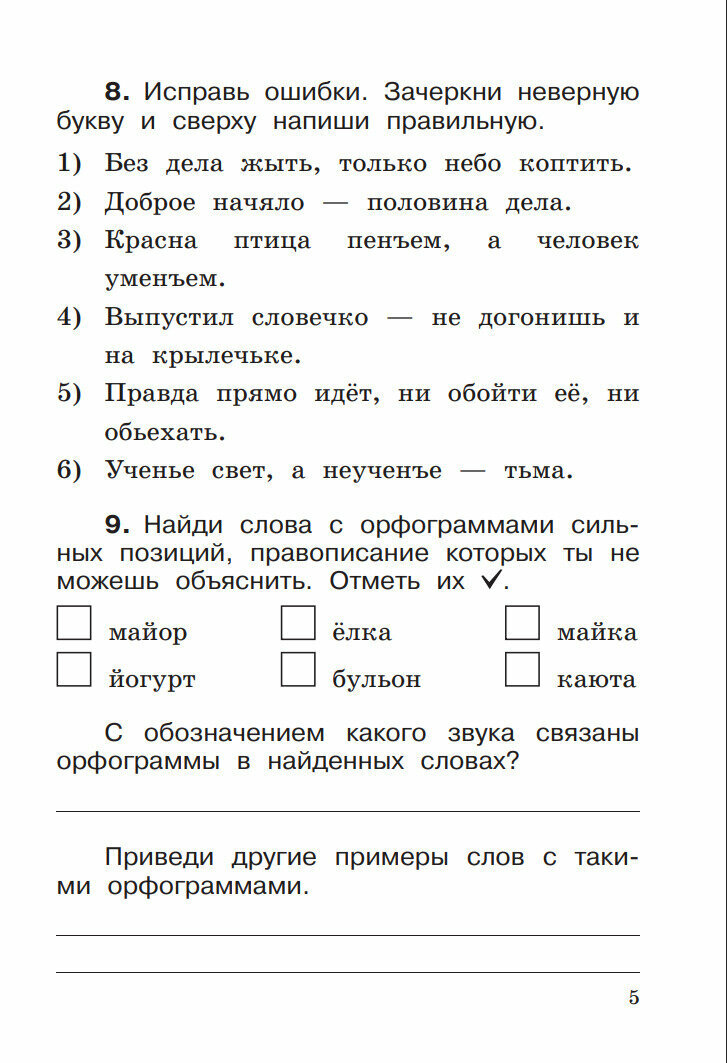 Контрольные и проверочные работы для 2 класса предназначены для текущей и итоговой проверки знаний учащихся по русскому языку. Все задания рассчитаны на базовый и повышенный уровни усвоения программного материала в соответствии с ФГОС начального общего образования. Тетрадь для контрольных и проверочных работ может быть использована учителем в работе с УМК по русскому языку авторов В. В. Репкина, Е. В. Восторговой, Е. В. Некрасовой и др. Тетрадь для 2 класса предназначена для проверки и контроля знаний учащихся о языке и речи, для диагностики способности учащихся определять границы своих собственных знаний, а также для проверки уровня сформированности таких действий, как моделирование, контроль и оценка. Тетрадь содержит стартовую проверочную работу, тематические и итоговые контрольные работы, а также материал для контрольного списывания и контрольных диктантов. Представленные в тетради тексты включают все основные темы программного материала. К каждому диктанту предлагаются несколько грамматических заданий, что дает возможность выбора. Эти задания помогут учителю и родителям контролировать формирование орфографической зоркости учащихся. Задания каждой тетради разработаны в соответствии с требованиями к планируемым результатам Примерной основной образовательной программы начального общего образования по русскому языку и рассчитаны на учащихся, обучающихся по методике системы Д. Б. Эльконина - В. В. Давыдова.