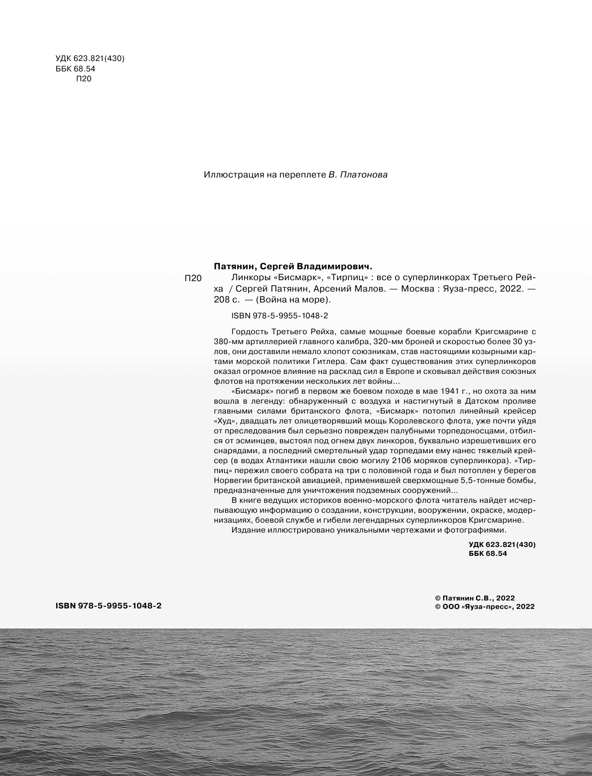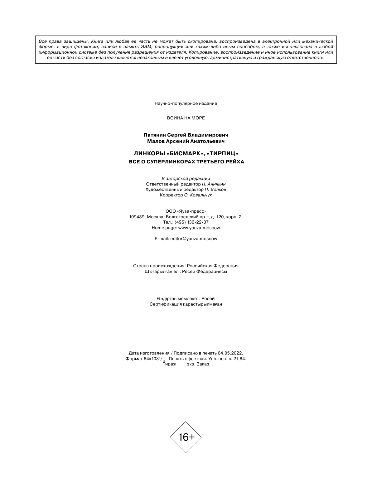 «Бисмарк» «Тирпиц». Все о суперлинкорах Третьего Рейха (Арсений Анатольевич Малов, Сергей Владимирович Патянин); Яуза-пресс ООО, 2022