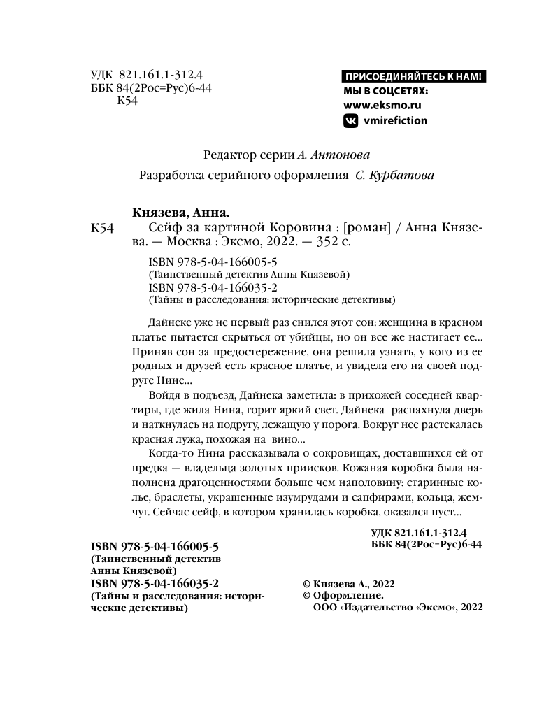 Сейф за картиной Коровина (Анна Князева); Эксмо, Редакция 1, 2022