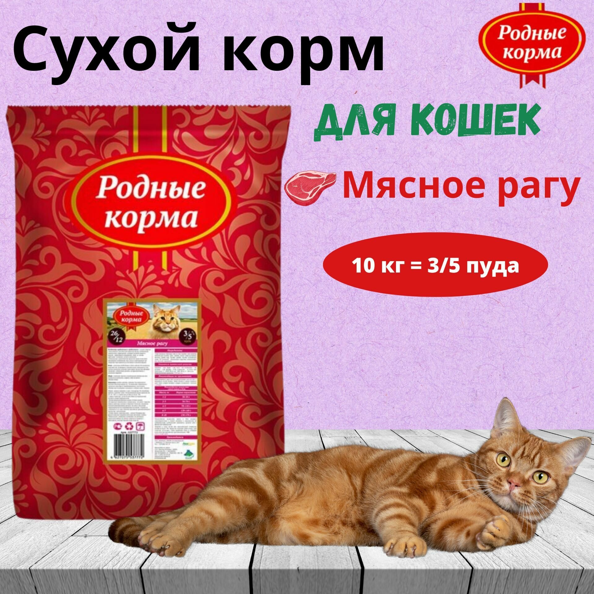 Родные корма сухой корм для взрослых кошек всех пород мясное рагу (10 кг) мясо 10 кг
