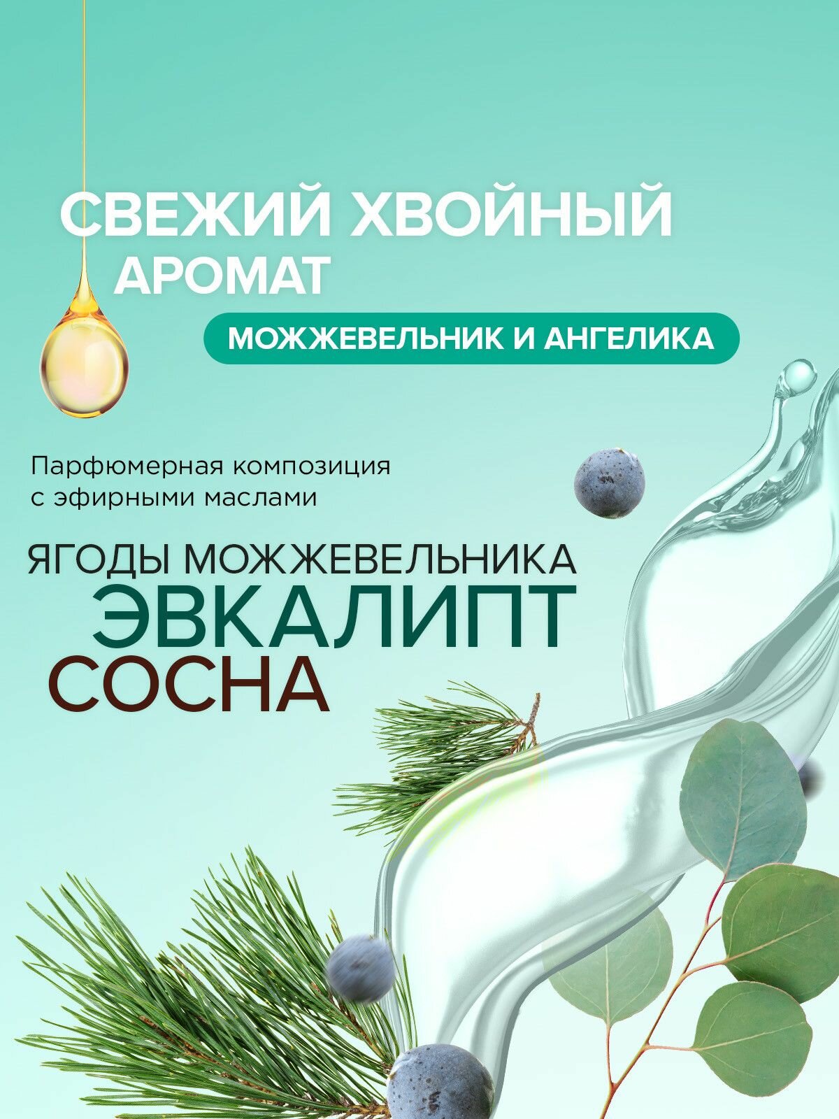 | Химический состав | Подготовленная вода > 30%; гипоаллергенная парфюмерная композиция Ягоды можжевельника и ангелика с эфирными маслами сосны, ягод можжевельника и эвкалипта < 5%; комплекс Н-тензидов (ПАВ из растительного масла) < 5%; поглотитель запаха (соль полиитаконовой кислоты) < 5%; изопропиловый спирт высокой степени очистки < 5%; консервант (бензоат натрия) < 5%. |