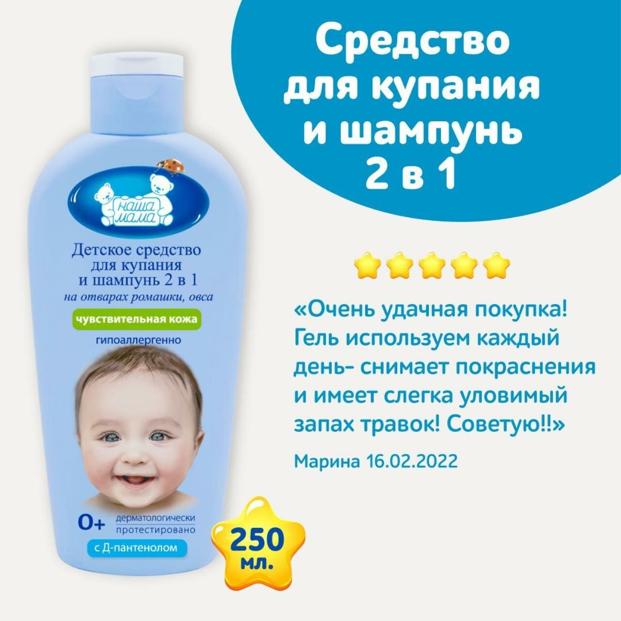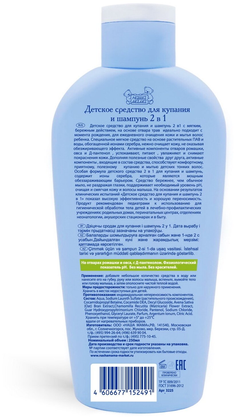 Средство для купания и шампунь Наша мама 250мл