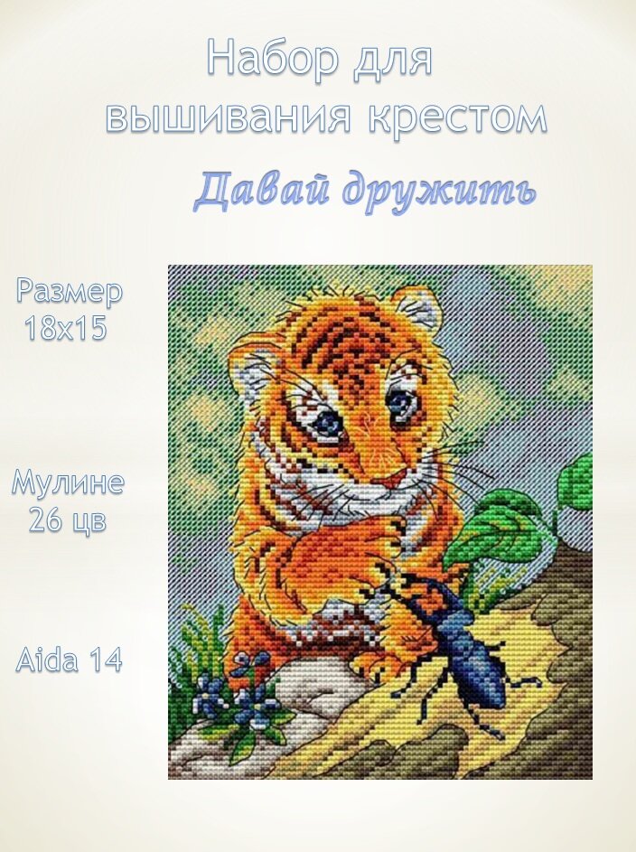 В набор входит: хлопковая канва Gamma "Aida" №14, белая; нитки мулине Gamma, разобранные на органайзере (26 цветов); черно-белая символьная схема .
