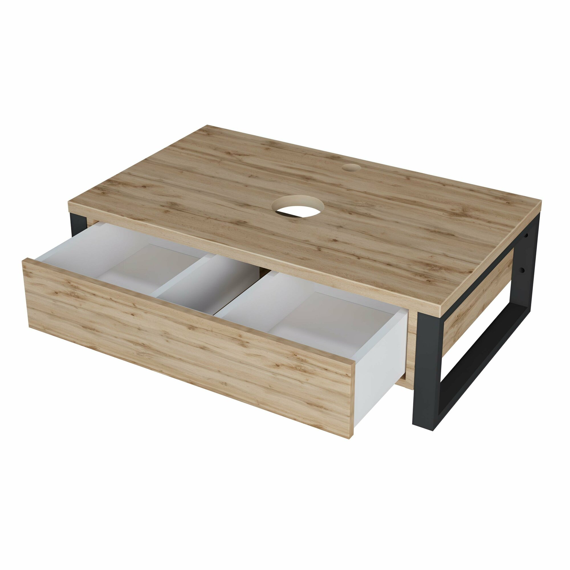 Тумба 1Marka GRUNGE LOFT 70П 1в. я дуб вотан Ц0000015940 в стиле лофт, покупка которой решает сразу несколько важных вопросов в функциональном оформлении ванной комнаты. Ее дизайн построен на гармоничном сочетании дерева и металла: корпус с естественной фактурой дерева дополнен металлическими кронштейнами, которые также могут использоваться в качестве рейлов для размещения полотенец и халатов. Выдвижной ящик без ручки, открывающийся одним простым нажатием, разделен на несколько отсеков для удобства организации процесса хранения. Также тумба предполагает свободное пространство для размещения косметики и предметов декора.Приобретается отдельно:Раковина "Ringo Cut 53" Санита - Арт. У84088 Раковина "Infinity 60" Санита - Арт. У84089 Раковина Roll 53 Polytitan - Арт. У98808Раковина Elli 45 Polytitan - Арт. Ц0000008888