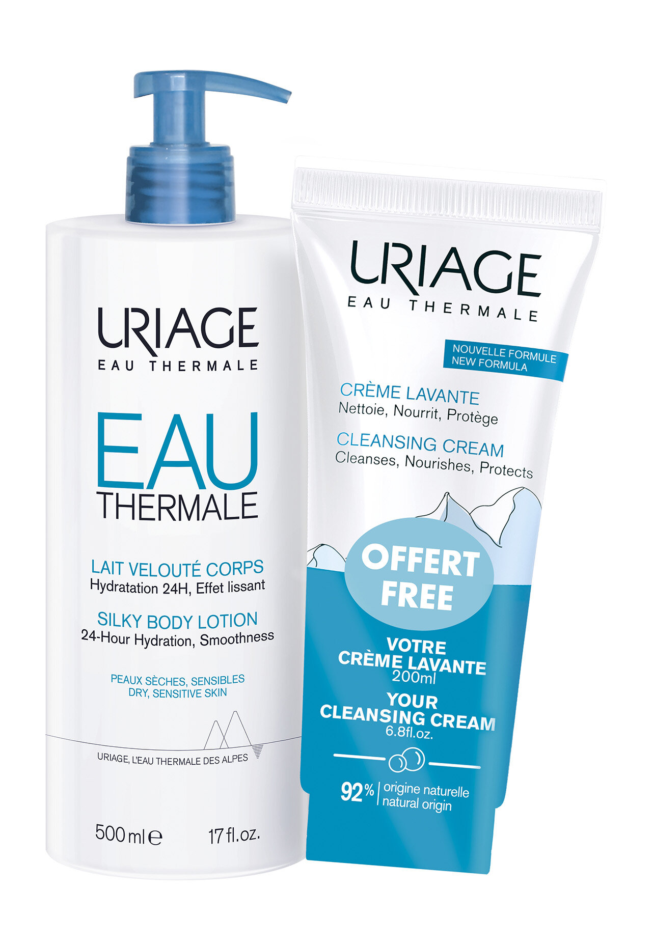 Uriage Набор (увлажняющее молочко для тела 500 мл + очищающий пенящийся крем 200 мл) (Uriage ) (ЭХ99989429979)