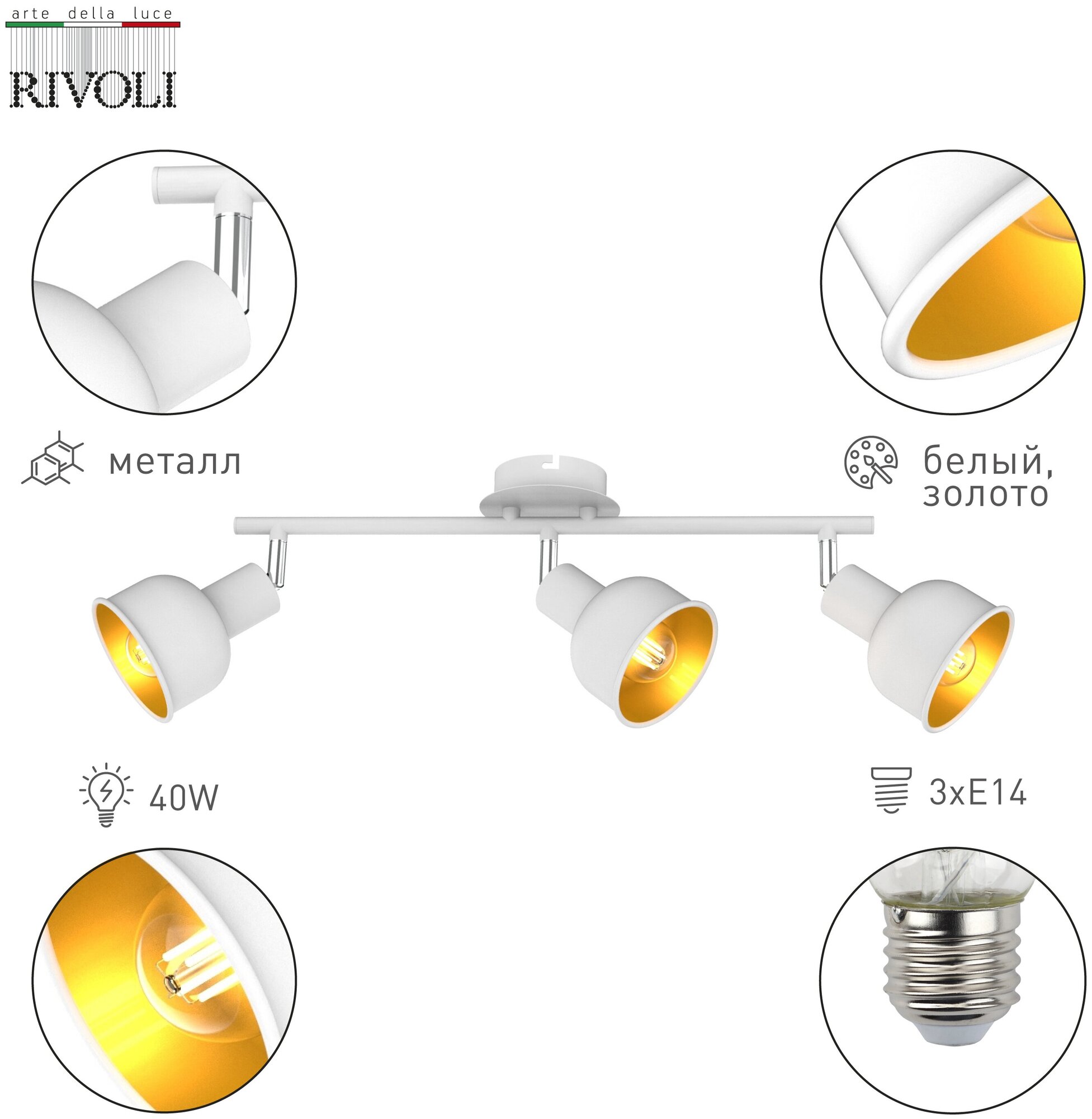 | Цвет плафона / абажура | белый, золото |